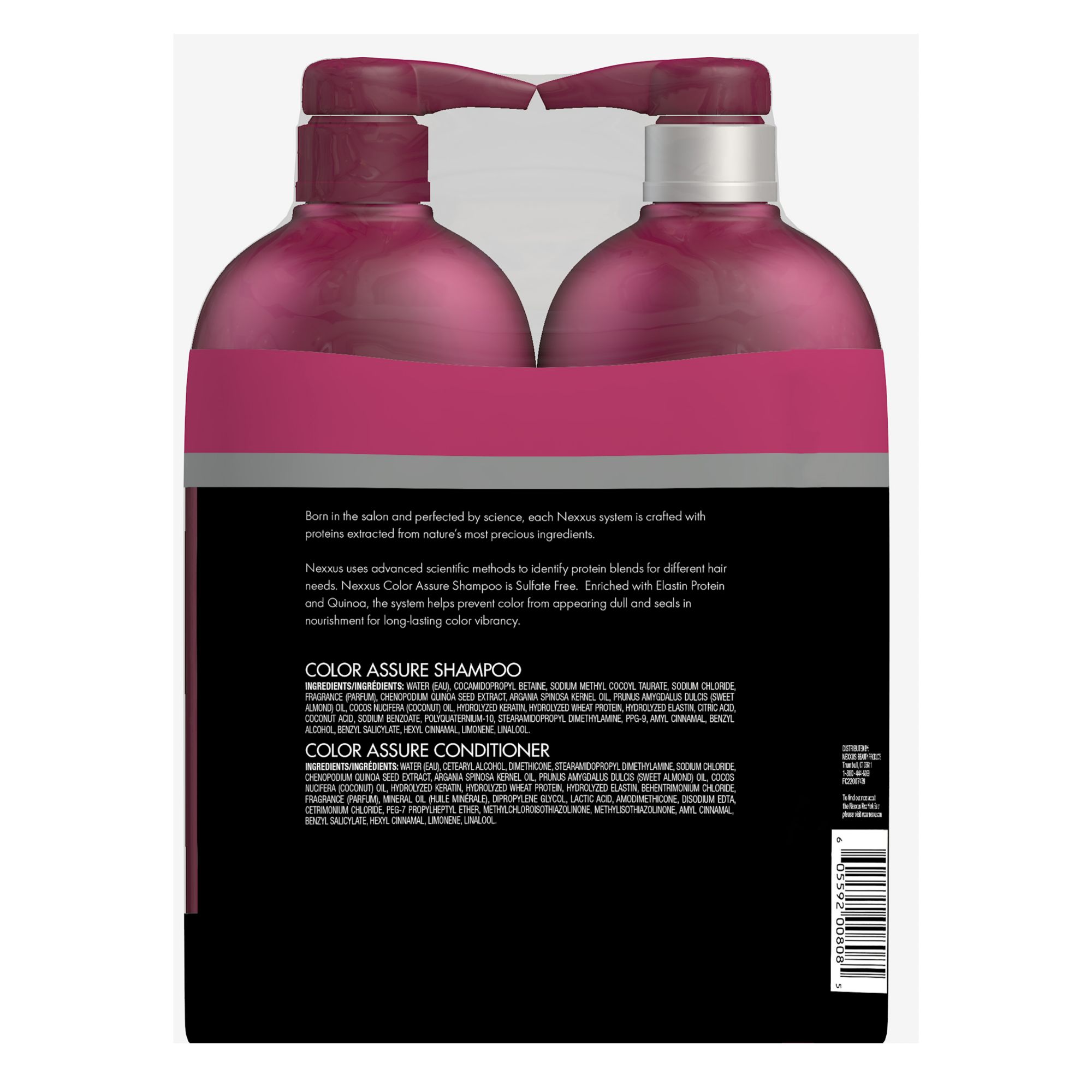 Color Safe Shampoo and Conditioner for Colored Hair: Nexxus color assure shampoo and conditioner for color-treated hair helps moisturize and enhance the vibrancy of colored hair Color Safe Shampoo and Conditioner: This color safe shampoo provides long-lasting vibrancy for up to 40 washes Quality Ingredients for Colored Treated Hair: Infused with an exclusive ProteinFusion blend with Elastin Protein and Quinoa, this color protecting shampoo and conditioner help to enhance color Womens Shampoo and Conditioner for Colored Treated Hair: The Nexxus color assure hair conditioner creates an invisible defensive layer to protect essential proteins within the hair fiber Salon-quality Color Protecting Shampoo and Conditioner: Nexxus hair products were born in salons and perfected by science, using high-performing technology and precious ingredients Nexxus Color Assure Shampoo and Conditioner for Color Treated Hair Color Assure Enhance Color Vibrancy: For best results, use this shampoo and conditioner for colored hair together