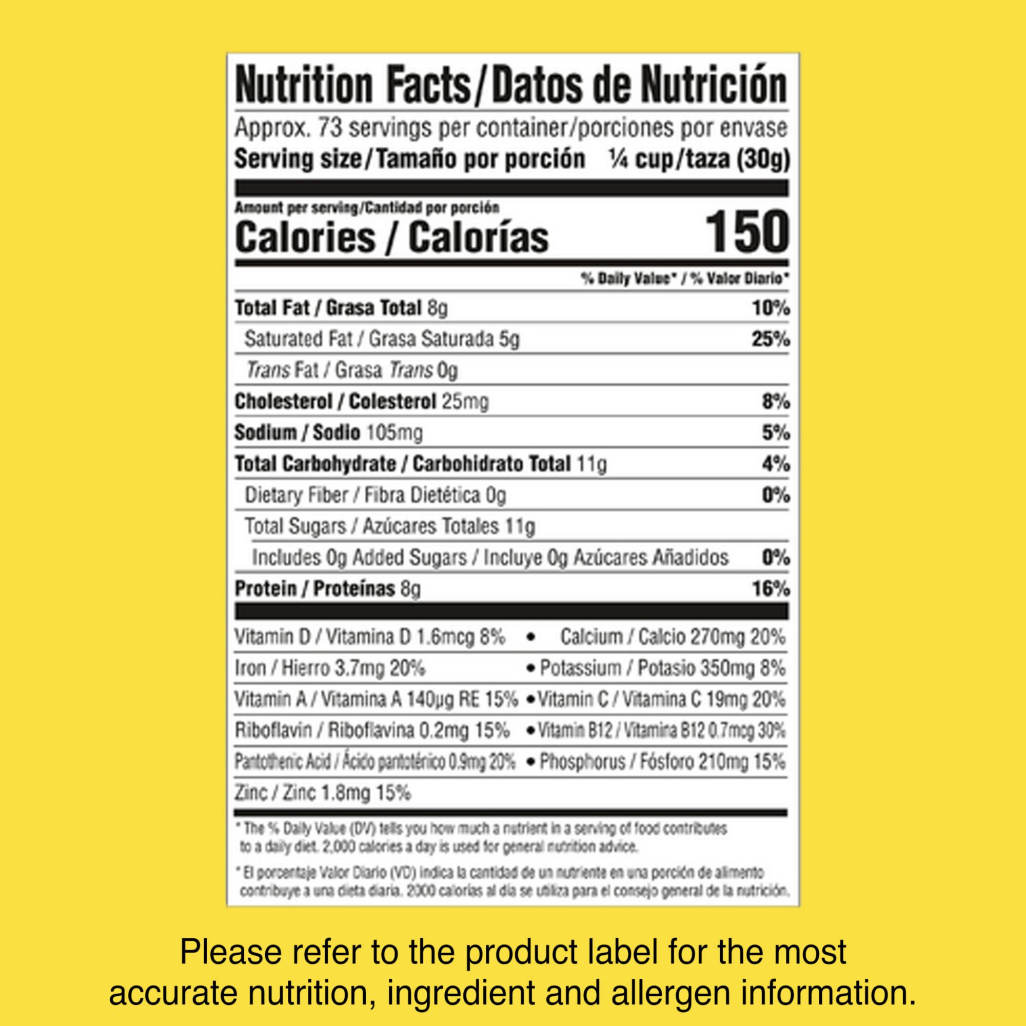 Includes dry whole milk powdered drink mix, 4.85 lbs.