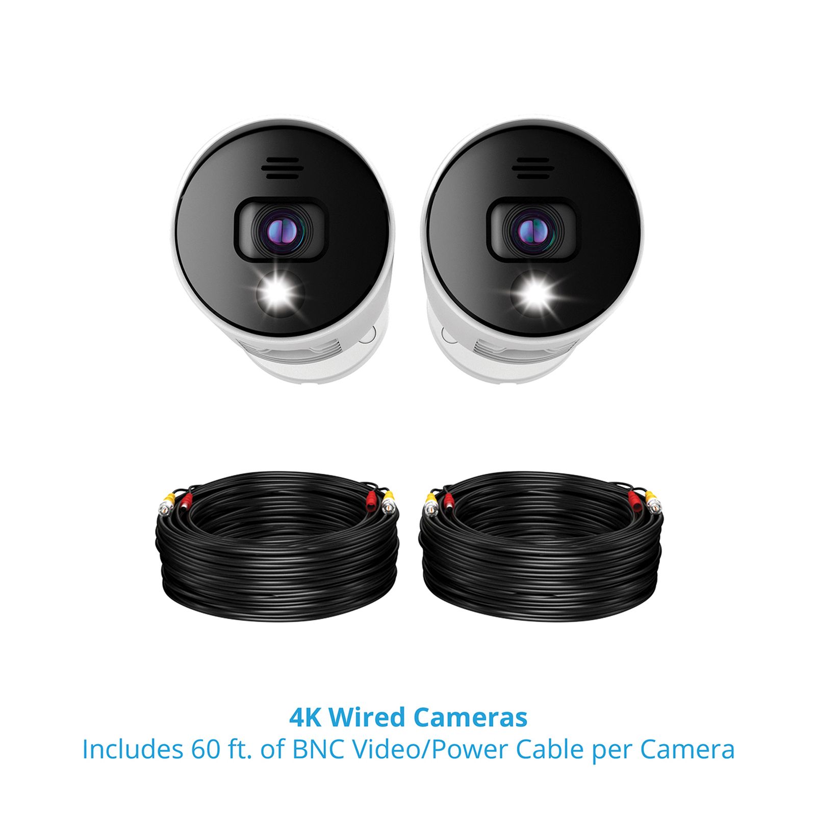 | Features | 4K Ultra HD, Night Vision, Preset Voice Alerts, Built-in Camera Siren, Smart Detection Technology, Motion-activated Spotlights, Weather-resistant, Wired Connection, No Monthly Fees |