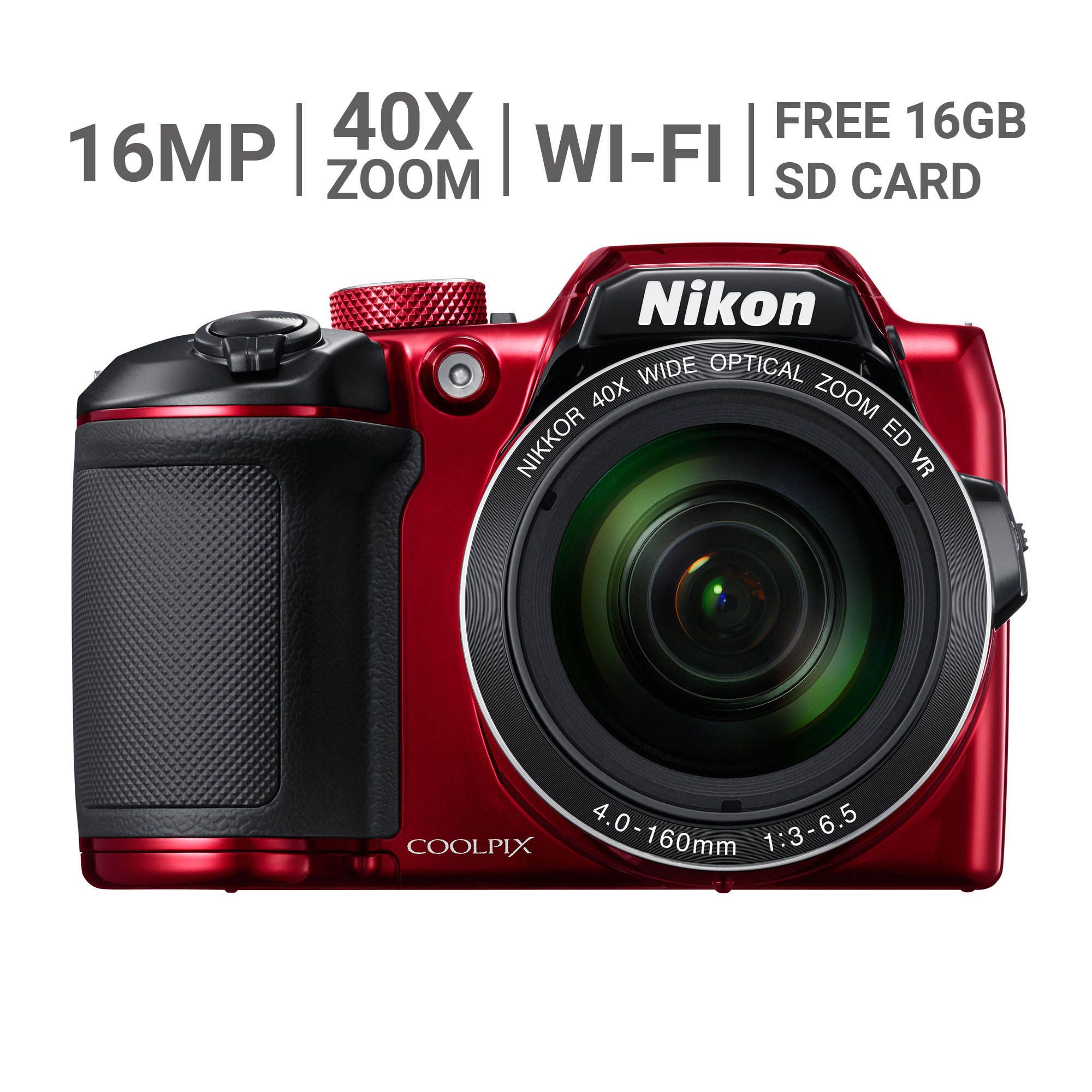Nikon COOLPIX B500 16MP CMOS 40x Wi-Fi Digital Camera with Case and 16GB SD Card - Red