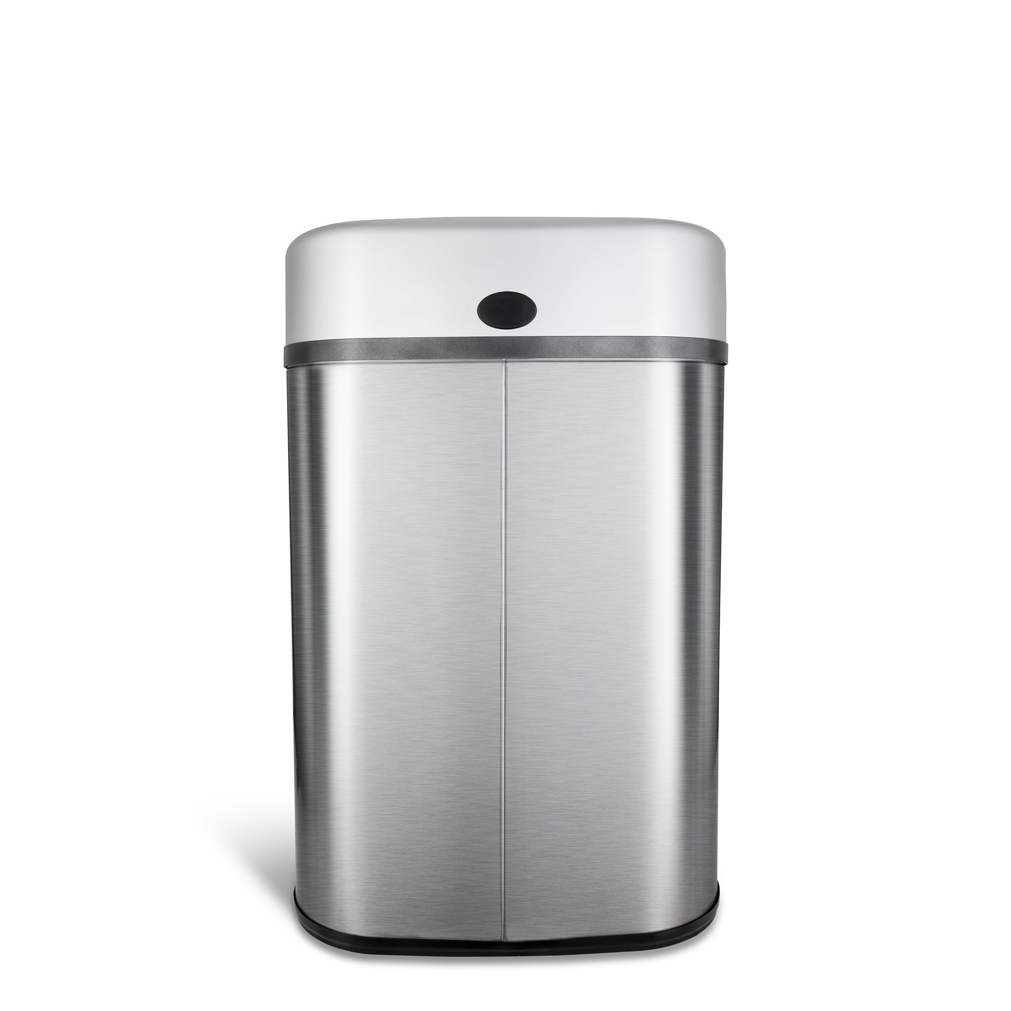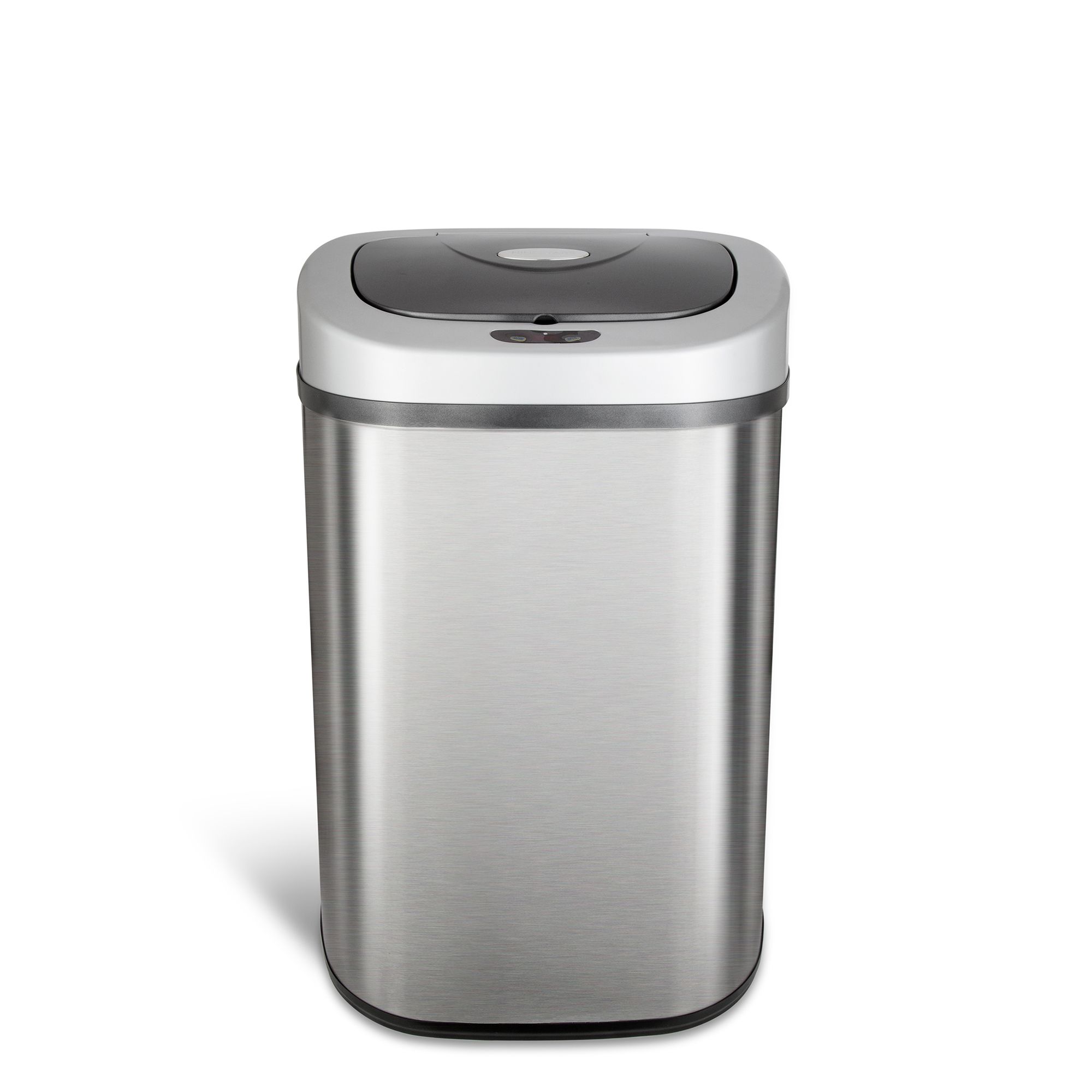 Capacity: 21.1 gal. Sensor activated for touchless operation Finger print resistant stainless steel Non skid base Open and close buttons for optional manual operation Operates on 3 D batteries* Ring liner holds trash bags up and conceals them within the trash can Soft close technology Includes 21.1 gal. sensor trash can Warranty: 2 years