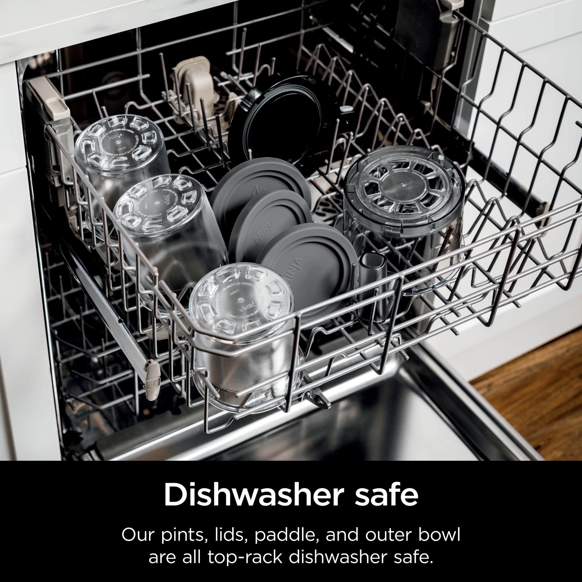 Containers, lids, and paddle are top-rack dishwasher safe