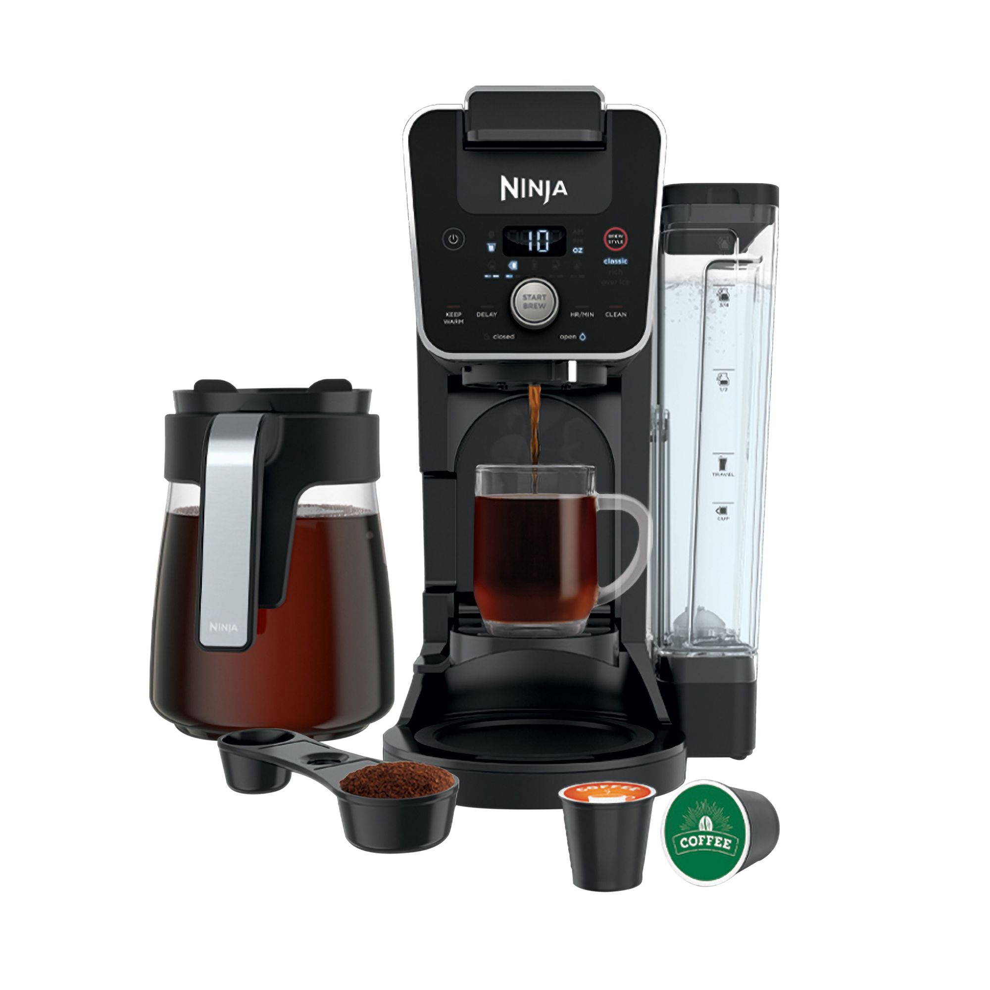 Includes coffee maker, paper filter kit, 12-cup glass carafe, ninja pod adapter, ninja smart scoop