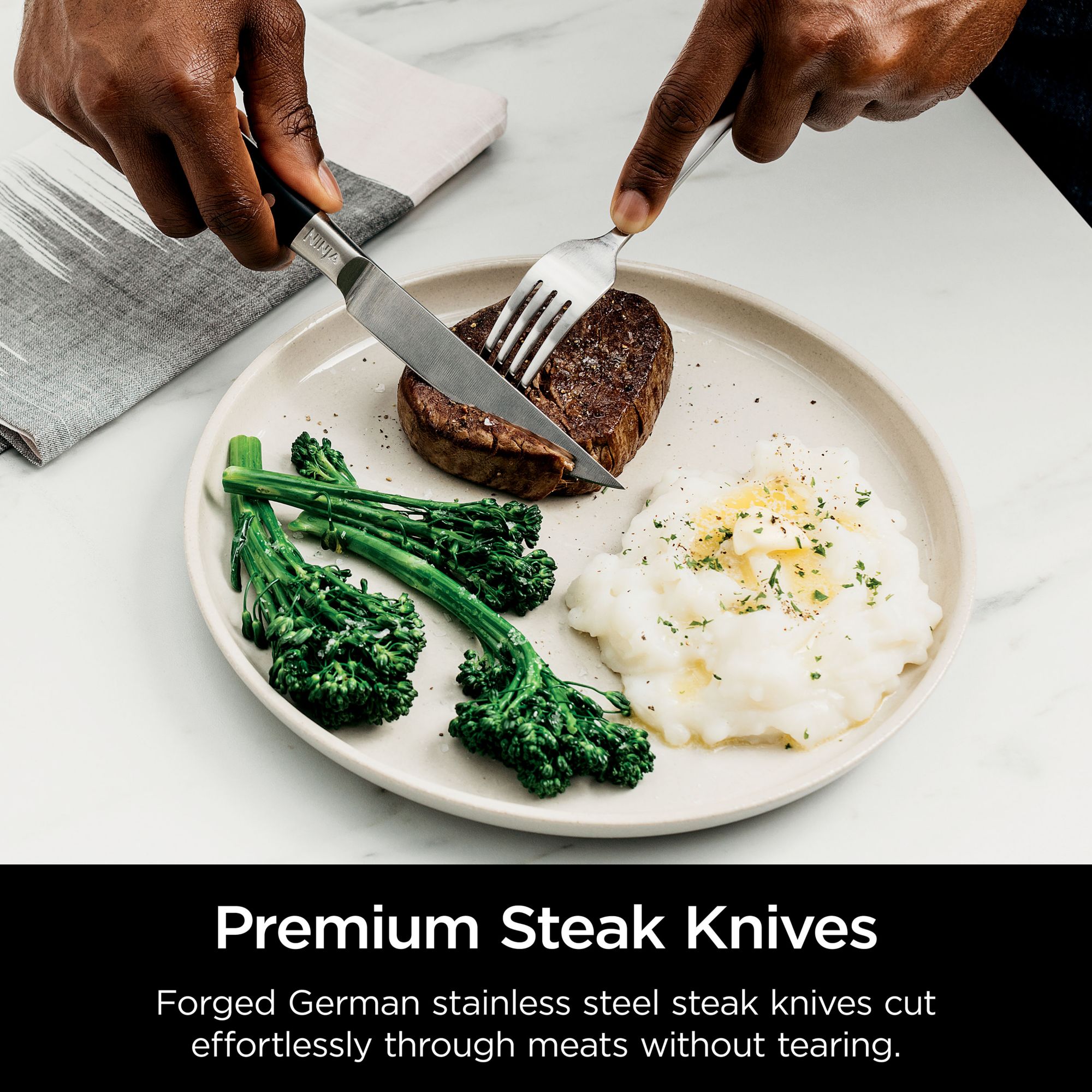 Impress your guests with professional steakhouse-quality forged German stainless steel steak knives that cut effortlessly through meats without tearing