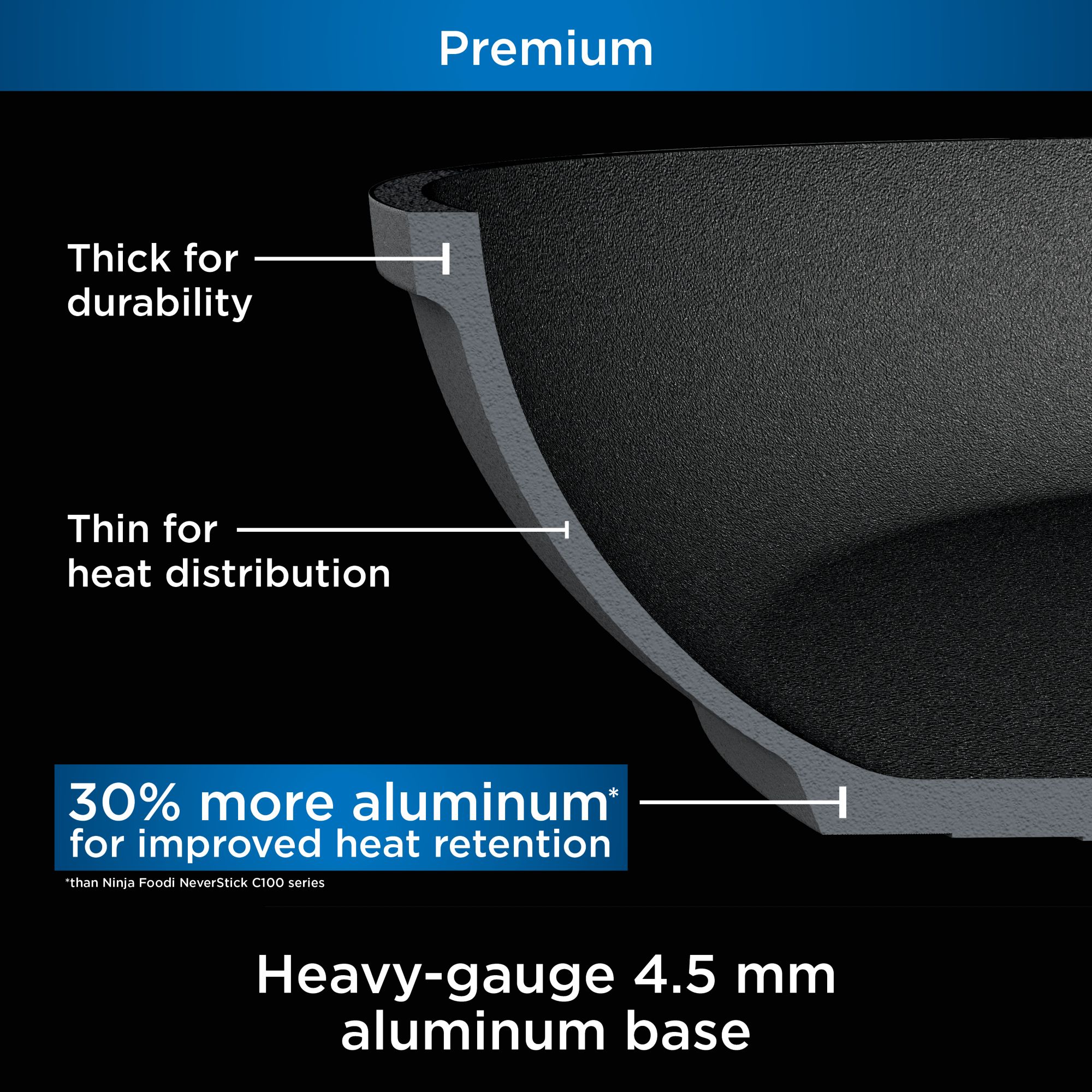 Heavy-gauge 4.5mm aluminum base for improved heat retention