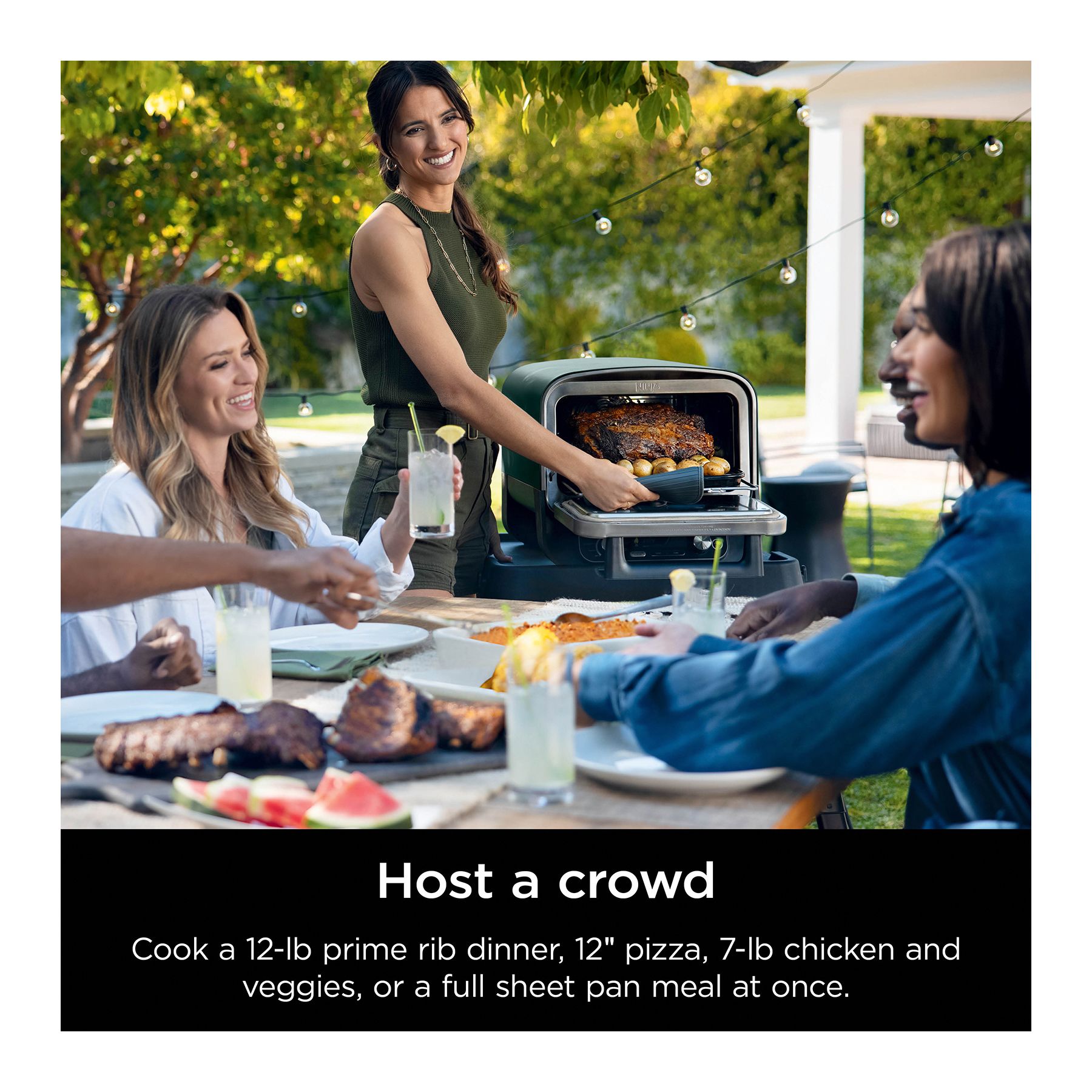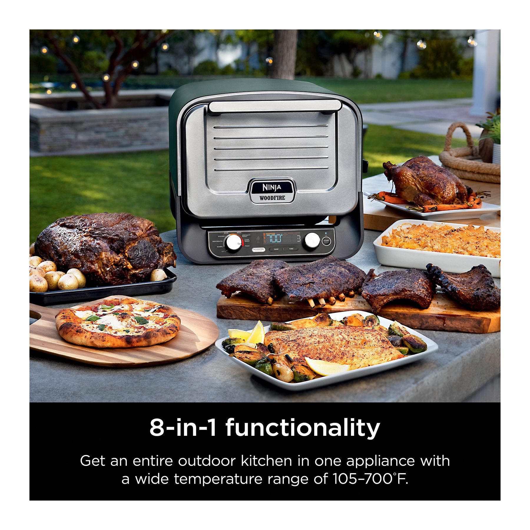 Do more outdoors and turn any space into an outdoor kitchen: Pizza, max roast, specialty roast, broil, bake, smoker, dehydrate and keep warm