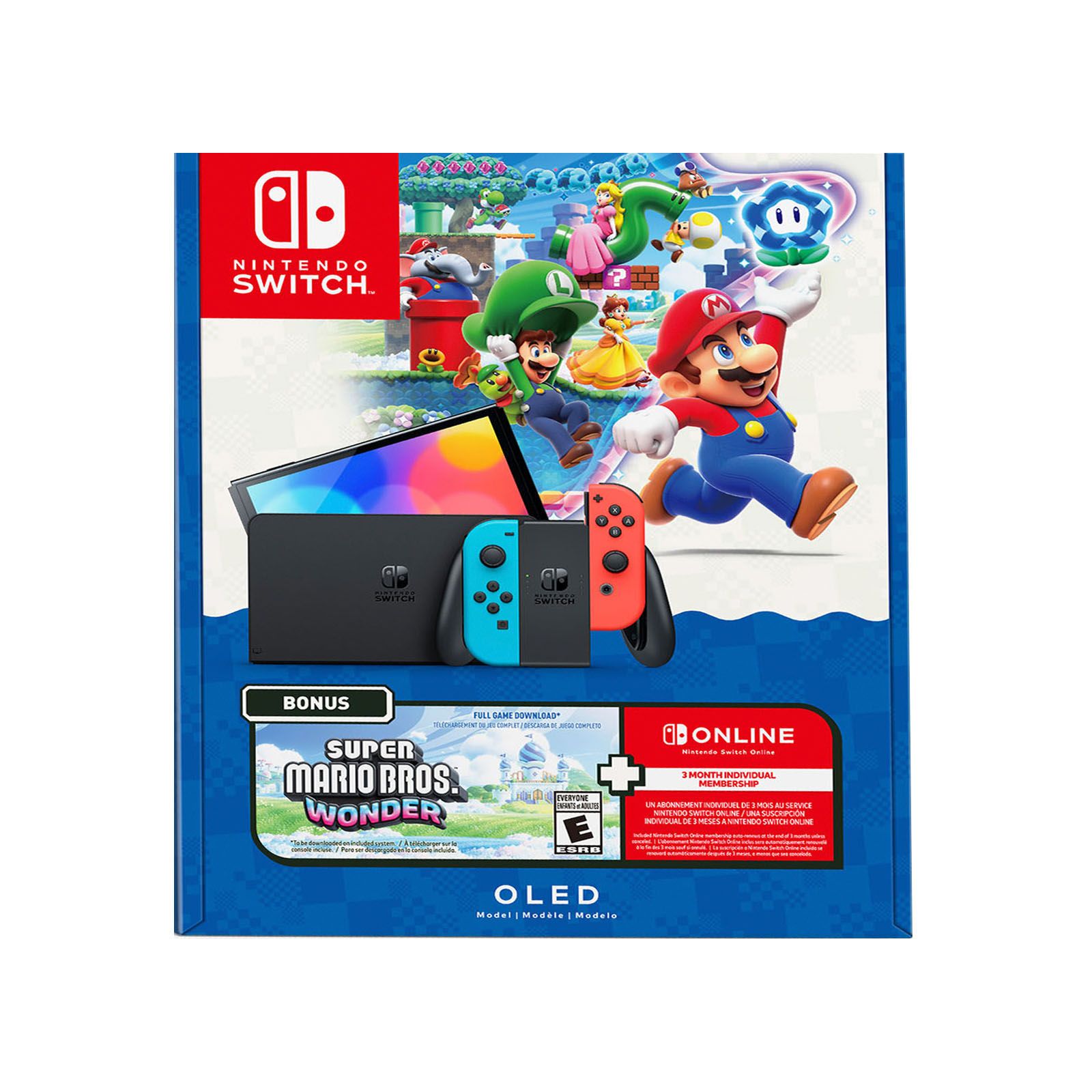 Nintendo Switch OLED Model + Super Mario Bros. Wonder Bundle (Full Game Download + 3 Mo. NSO Membership Included)