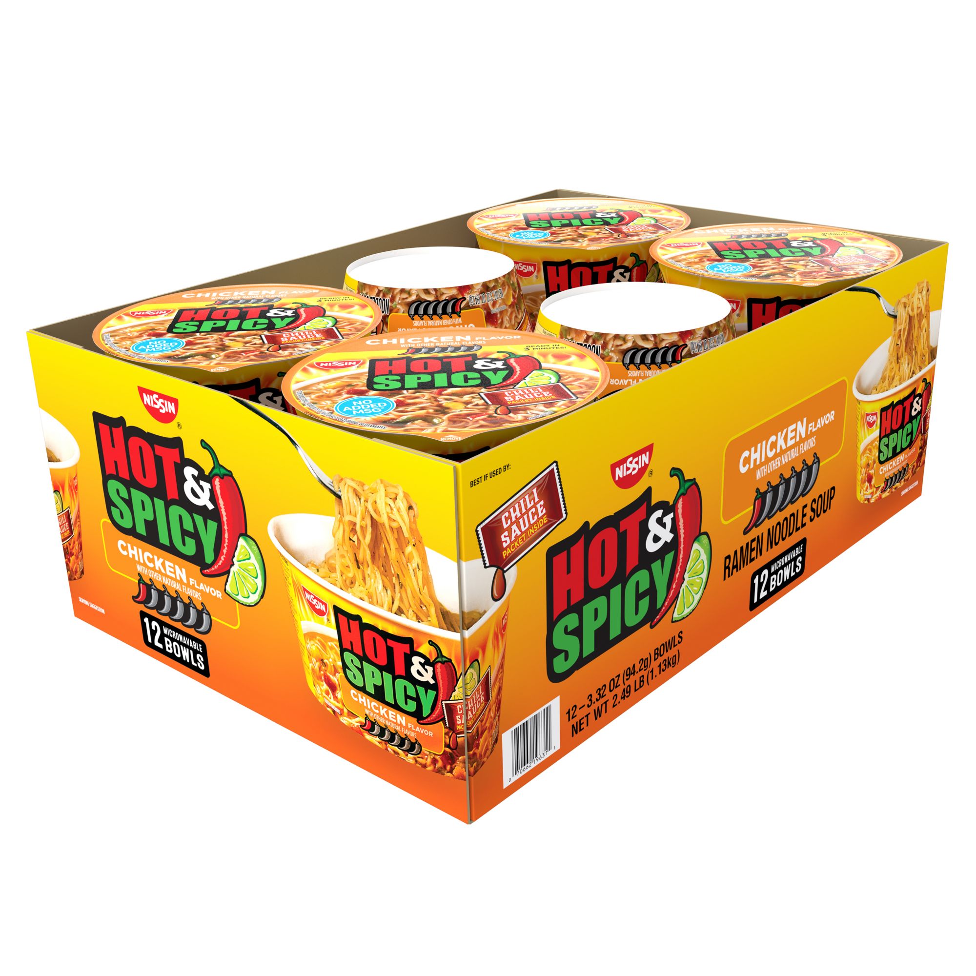 Nissin Foods USA Hot & Spicy Bowl Chicken, 12 pk./3.32 oz.