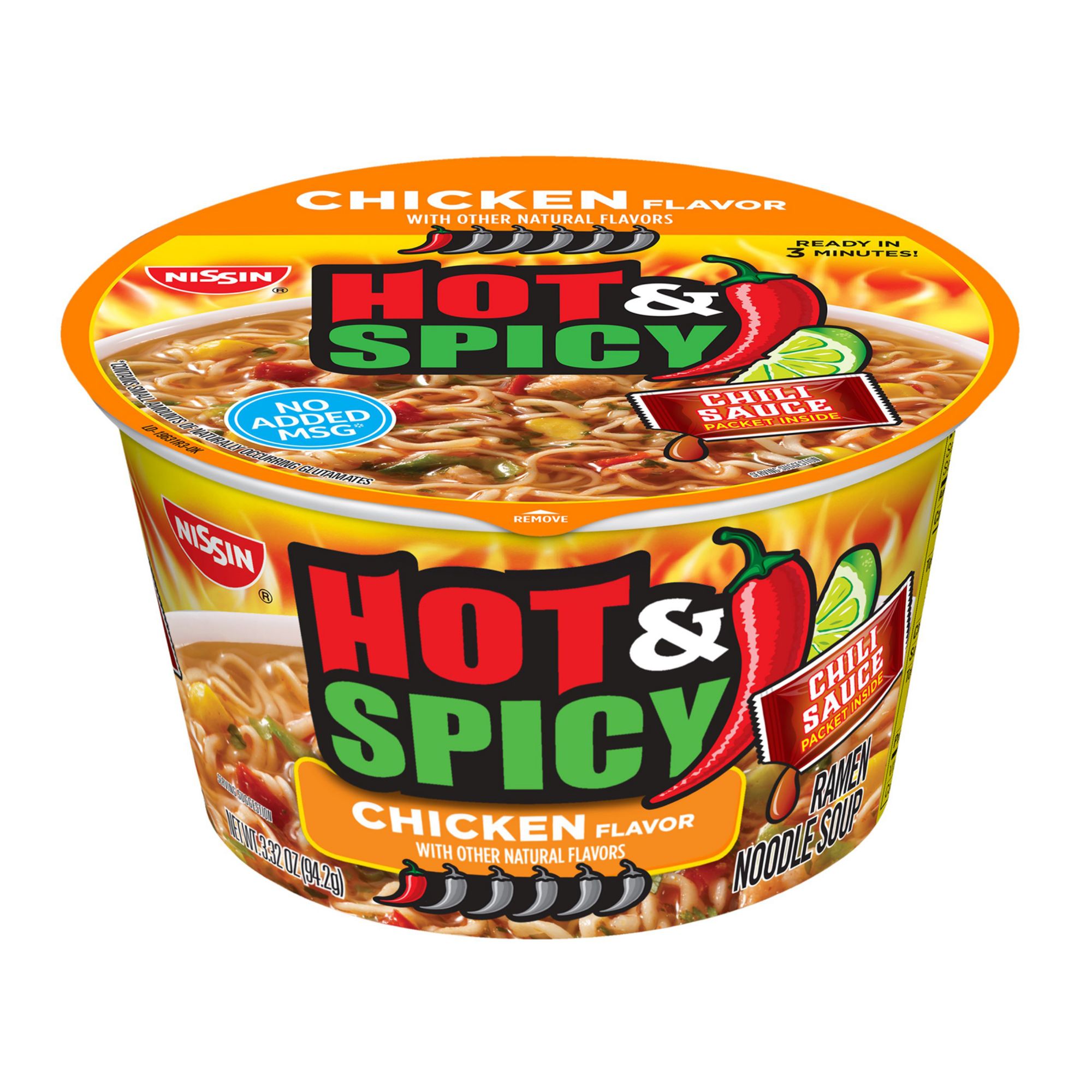 Full-contact flavor with an appetizing citrus twist! Ready to make you sweat in three minutes. If that sounds like your kind of ride, then you're ready for hot and spicy. From the moment you stir in the special chili sauce, prepare yourself for full-contact flavor with an appetizing citrus twist. Now with no added MSG, hot and spicy turns down the sodium while turning up the spice.