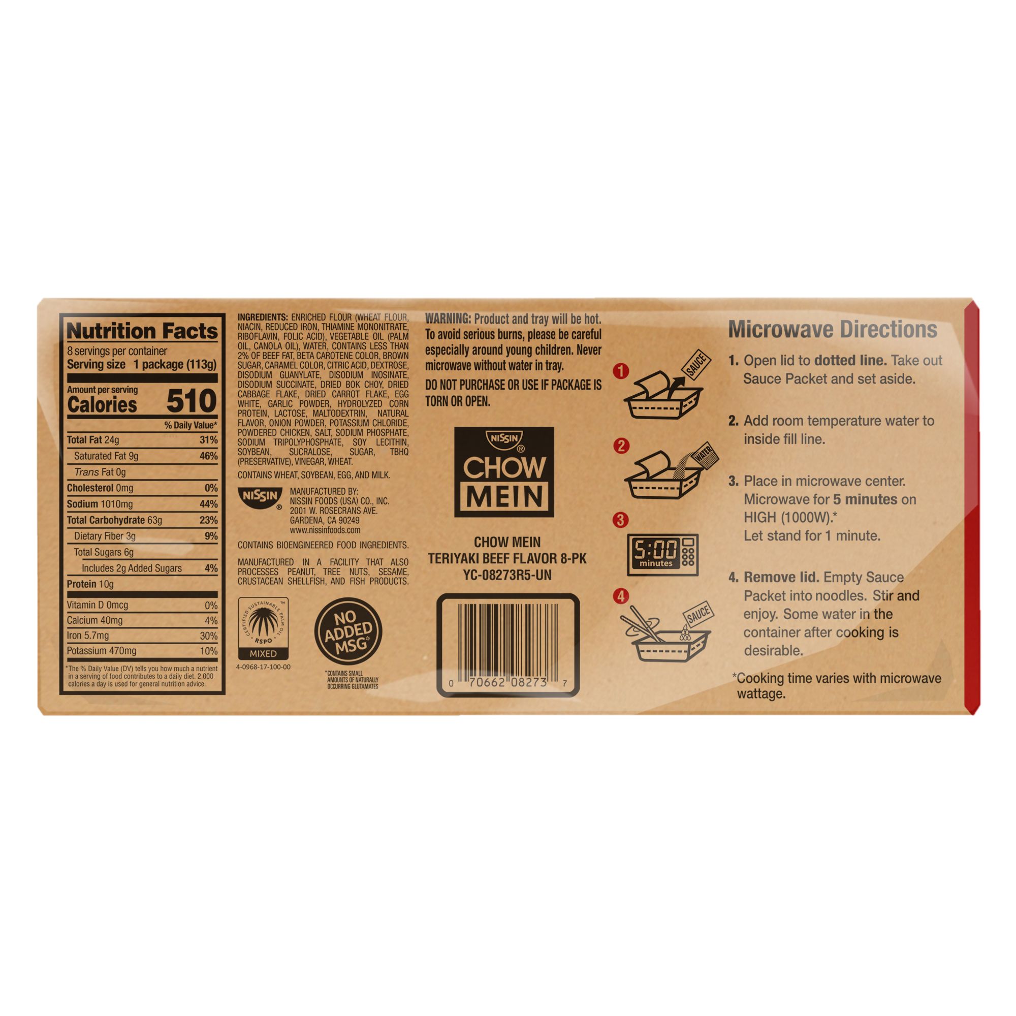 For a restaurant quality Chow Mein dish, the secret is in the sauce. The next time you crave Chinese food, simply reach in your cupboard for Nissin Chow Mein. Nissin Chow Mein is ready in five simple minutes. Each microwaveable tray of Chow Mein style noodles comes with a packet of a signature teriyaki sauce and a variety of vegetables including bok choy, cabbage, and carrots. Load up on these trays at home, school, office, or work, so you can have a quick meal whenever you need it.
