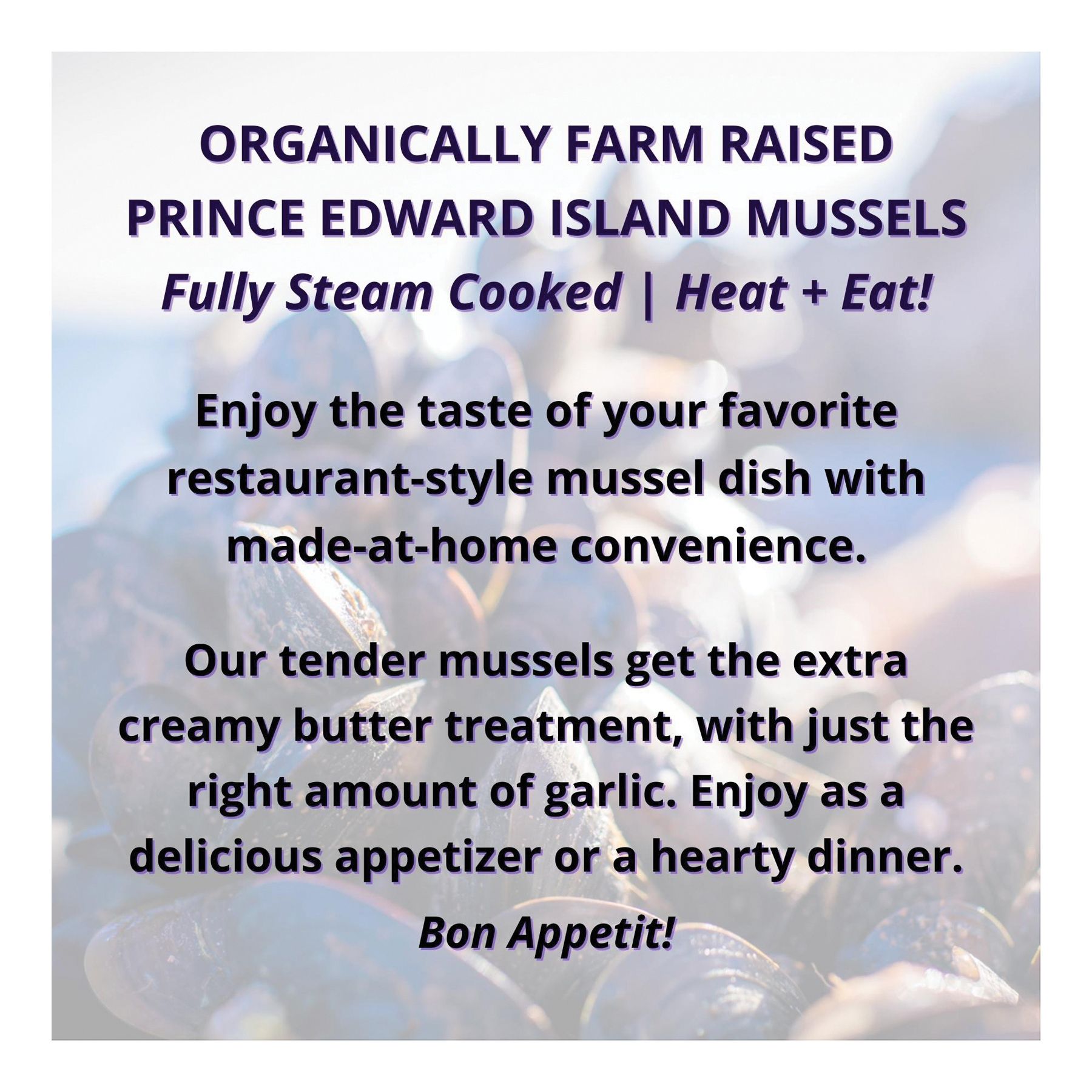 North Coast Naked Mussels are sustainably grown in the cold waters off the coast of Price Edward Island in Atlantic Canada. Naturally plump and flavorful, Naked Mussels are cooked with real butter sauce and just the right amount of garlic. The extra creamy sauce is the perfect complement to the delicious flavor and tender texture of these world-renowned PEI Mussels. Fully cooked for your convenience, simply heat the mussels and you can enjoy this restaurant-style dish in just a few minutes.