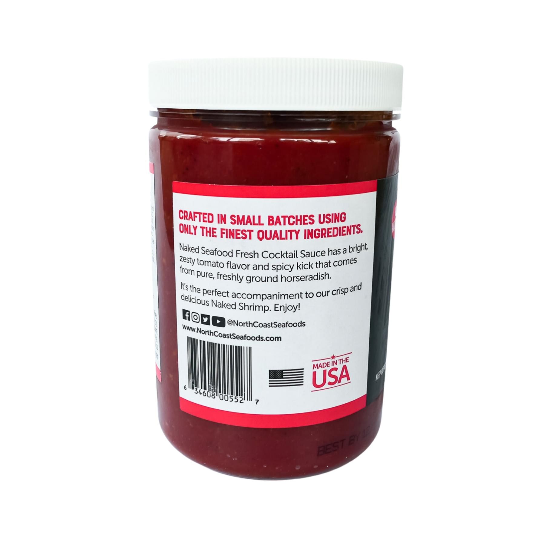 Naked Seafood Fresh Cocktail Sauce has a bright, zesty tomato flavor and spicy kick that comes from pure, freshly ground horseradish. It’s the perfect accompaniment to crisp and delicious Naked Shrimp. Enjoy!