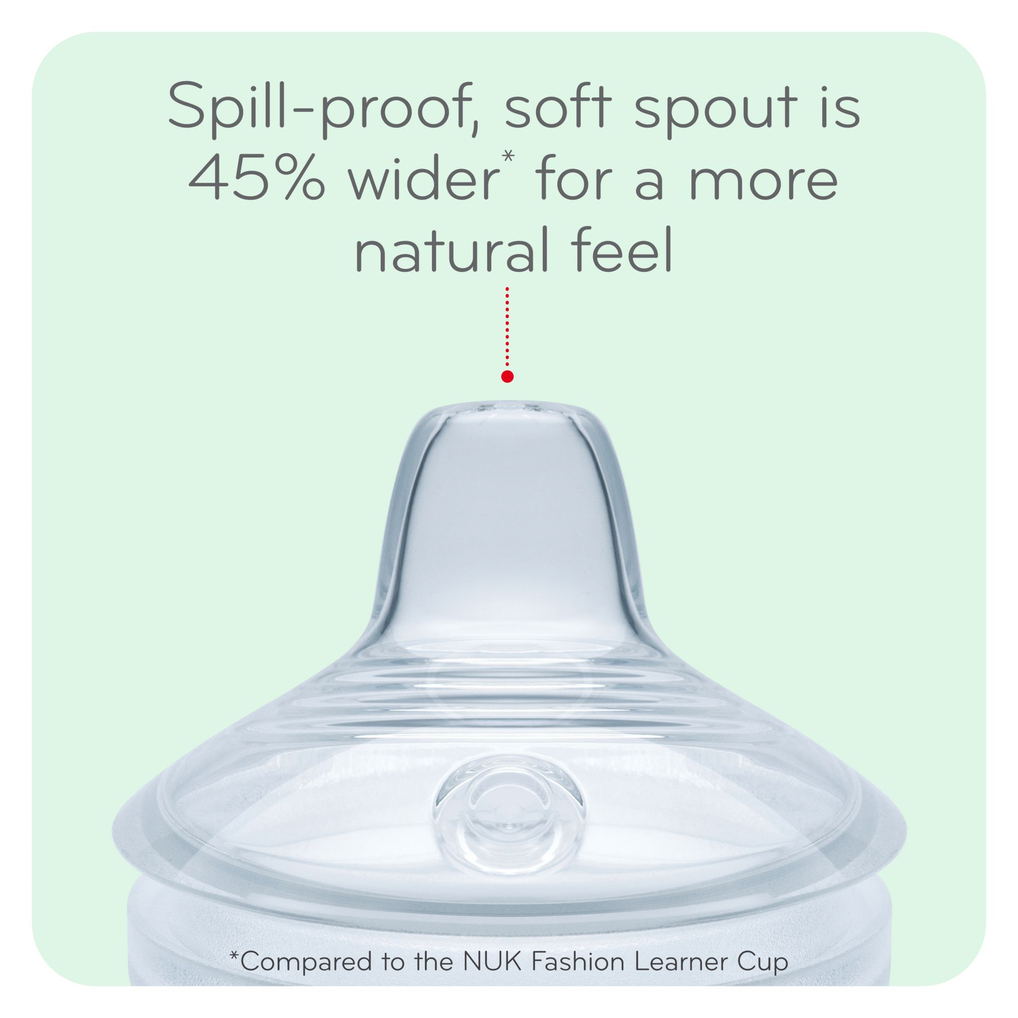 Nipple mimics the shape of mom’s nursing nipple during breastfeeding for a natural feed 5 oz. bottles have slow flow nipples with 3 holes; 9 oz. bottles have medium flow nipples with 6 holes; Included fast flow nipples have 9 holes Features NUK’s SafeTempindicator, which changes color when milk is too hot Includes NUK 12-pc. gift set (two 5 oz. bottles, three 9 oz. bottles, two orthodontic comfy pacifiers, and two Fast Flow nipples, two cup spouts and one handle to create a transition cup)