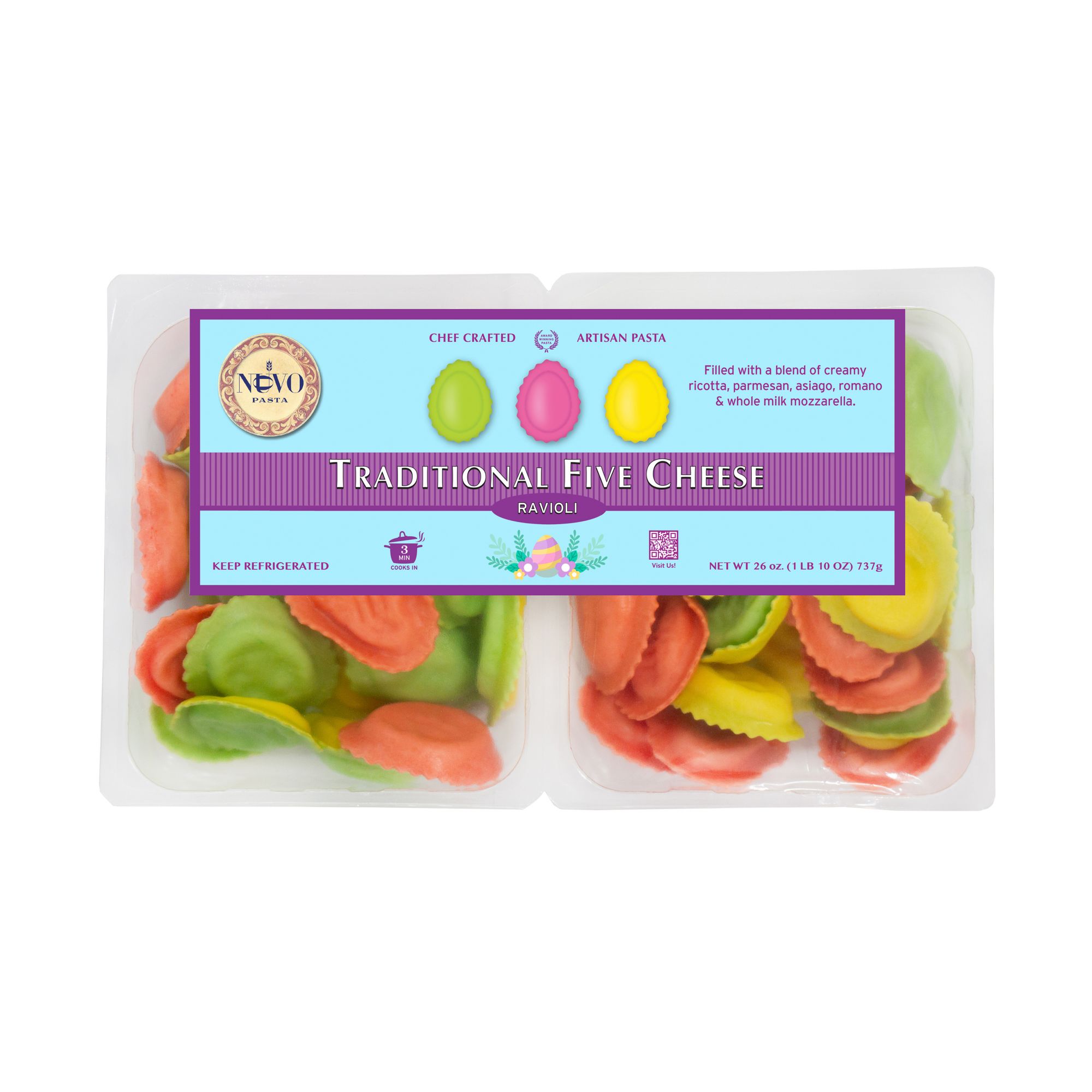 Celebrate Easter with Nuovo Pasta Easter Egg Shaped Cheese Ravioli! Presented in spring pastel colors, these ravioli will delight as a main dish or as the perfect side for your Easter table. Have a fun family dinner that both kids and adults will enjoy in just minutes! Nuovo Pasta is proud to bring the flavor of authentic Italian cuisine to your table at home. Nuovo has received numerous culinary awards for its line of specialty pasta. Their hand craftsmanship and custom-made Italian equipment replicate the age-old tradition of producing smooth, firm pasta filled with textured and rich flavored fillings. This pasta is made under the watchful eye of culinary trained experts ensuring the perfect harmony of flavor, aroma, and texture in every batch. Nuovo is proud to share the Italian culinary philosophy which advises us to slow down our hectic lives and enjoy thoughtfully and masterfully produced food. Nuovo Pasta – The Ultimate Italian Restaurant Meal at Home! Served by America’s finest Chefs since 1989.