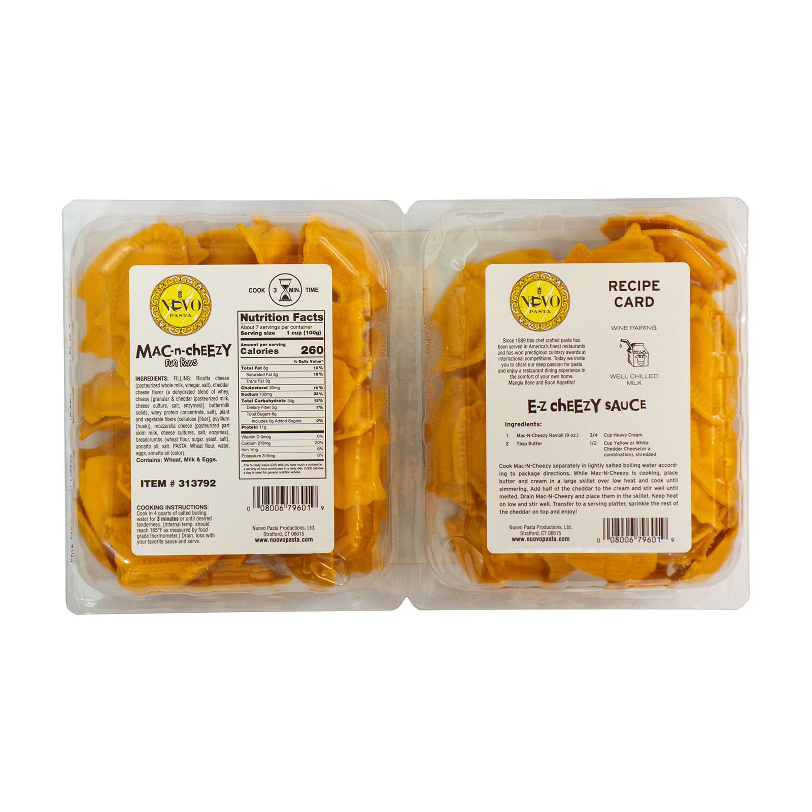 Nuovo Pasta Mac & Cheezy Fun Ravs are a treat for kids of all ages! Purchase today and enjoy classic mac and cheese flavor in a fun fish shaped ravioli in just minutes. Nuovo Pasta is proud to bring the flavor of authentic Italian cuisine to your table at home. Nuovo has received numerous culinary awards for its line of specialty pasta. Their hand craftsmanship and custom-made Italian equipment replicate the age-old tradition of producing smooth, firm pasta filled with textured and rich flavored fillings. Their pasta is made under the watchful eye of culinary trained experts ensuring the perfect harmony of flavor, aroma, and texture in every batch. They are proud to share the Italian culinary philosophy which advises us to slow down our hectic lives and enjoy thoughtfully and masterfully produced food. Nuovo Pasta – The Ultimate Italian Restaurant Meal at Home! Served by America’s finest Chefs since 1989.