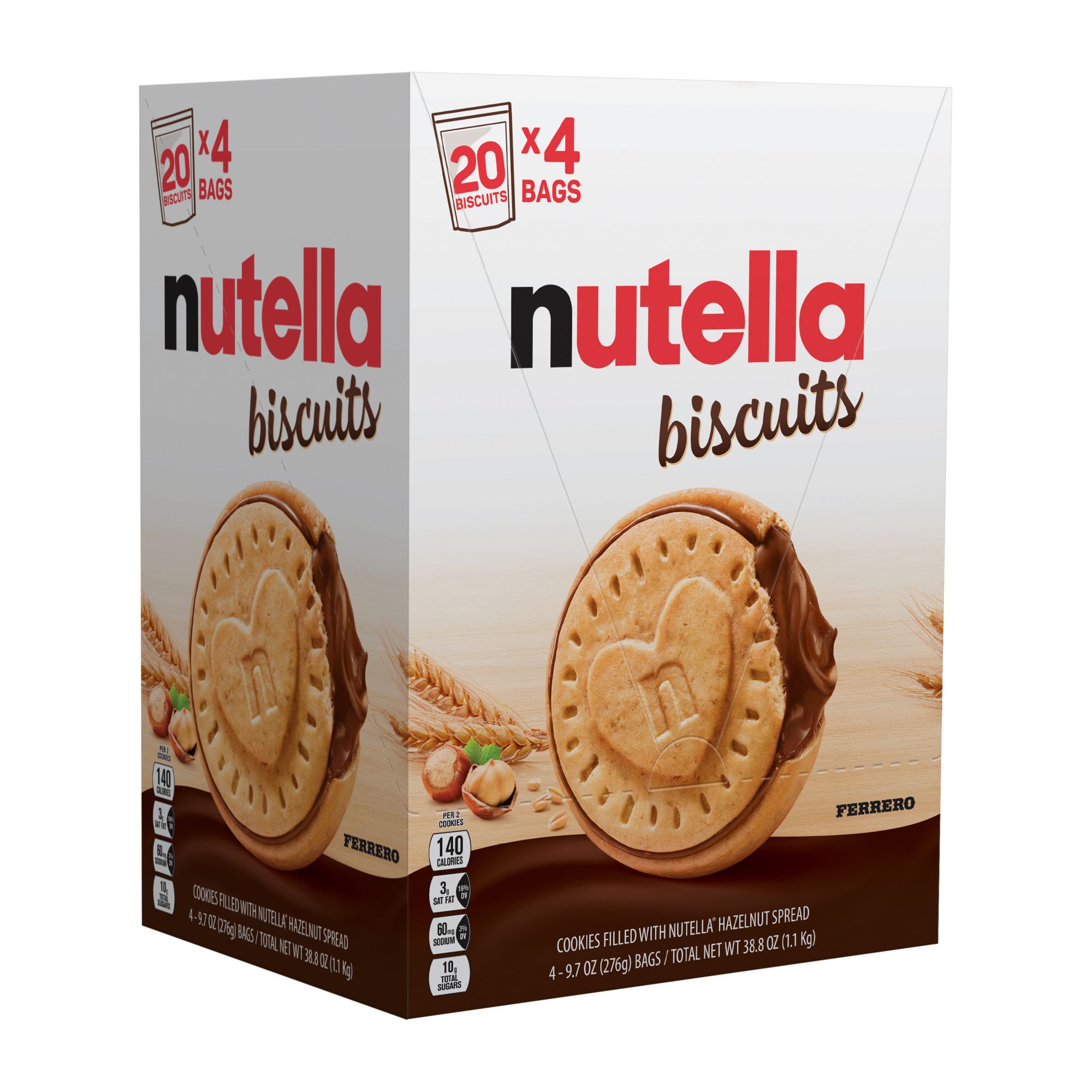 A cookie with heart: Enjoy golden-baked Nutella Biscuits filled with creamy Nutella hazelnut spread, packed in a 38.8 oz resealable snack pack