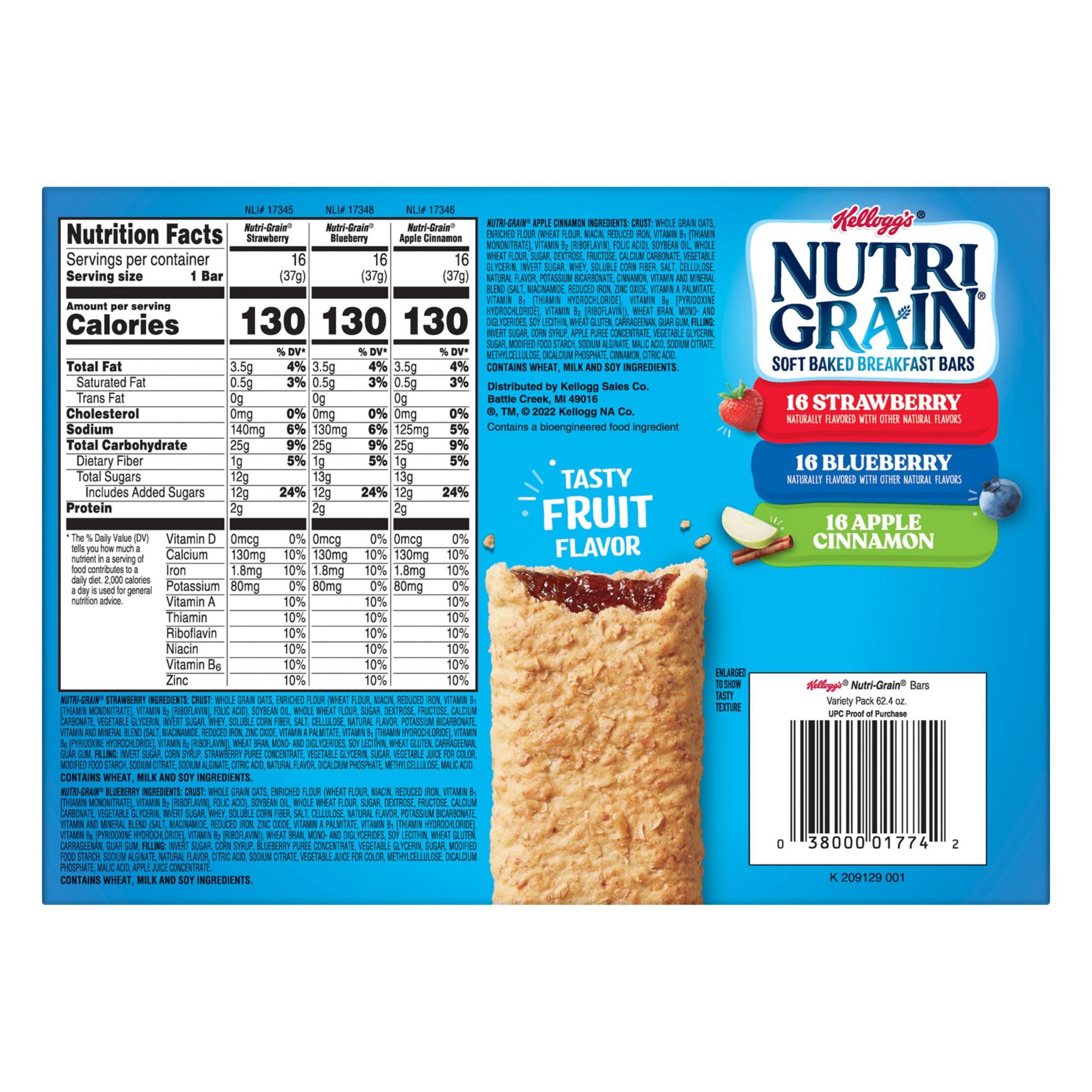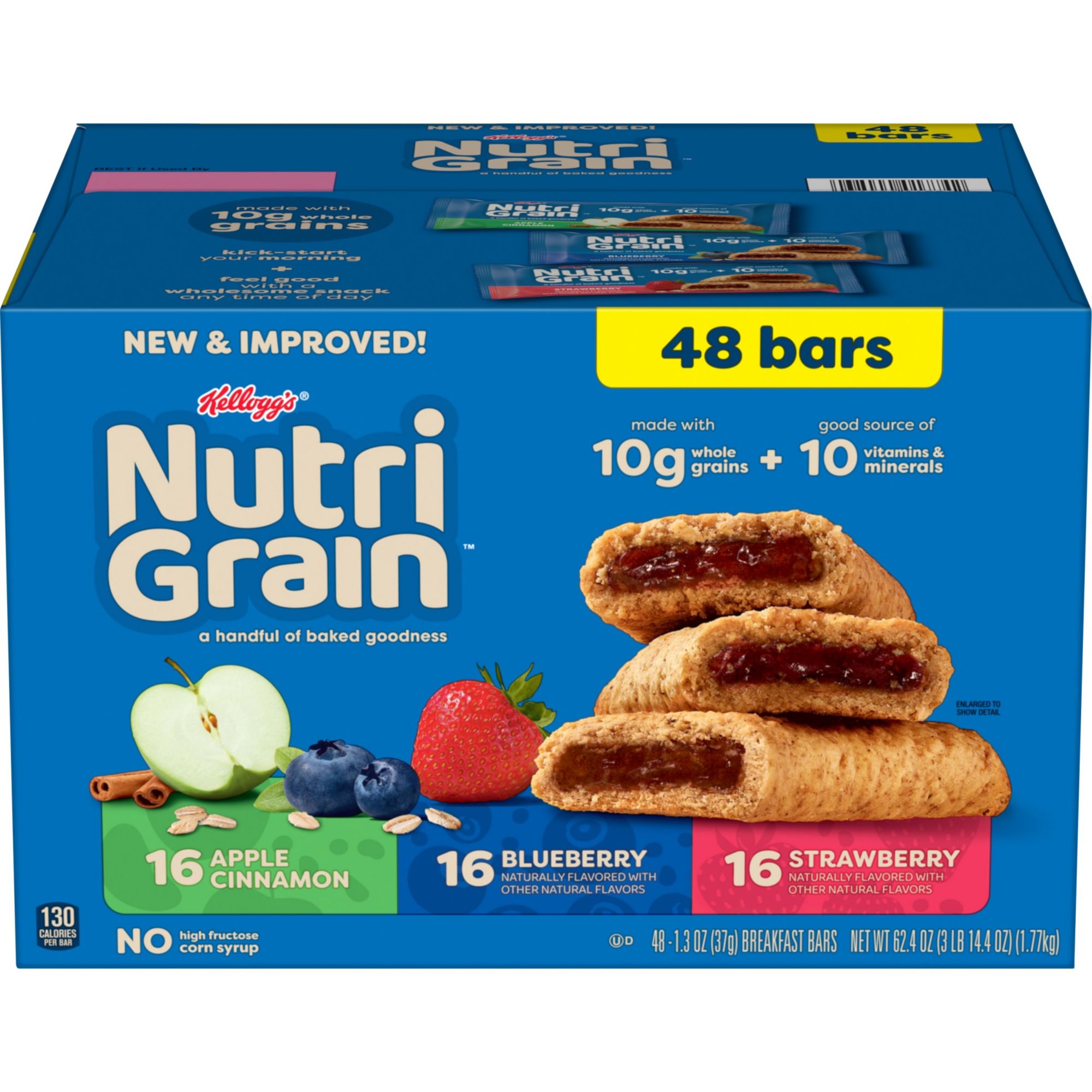 Made with real fruit and whole grains, Nutri-Grain Soft Baked Breakfast Bars make a delicious addition to any balanced breakfast and are a perfect grab-n-go snack Rise and thrive with a soft, chewy crust made with whole grains and a variety of fillings made with real fruit for feel-good mornings Good source of 8 vitamins and minerals Good source of fiber No high-fructose corn syrup No colors from artificial sources Includes 48 bars