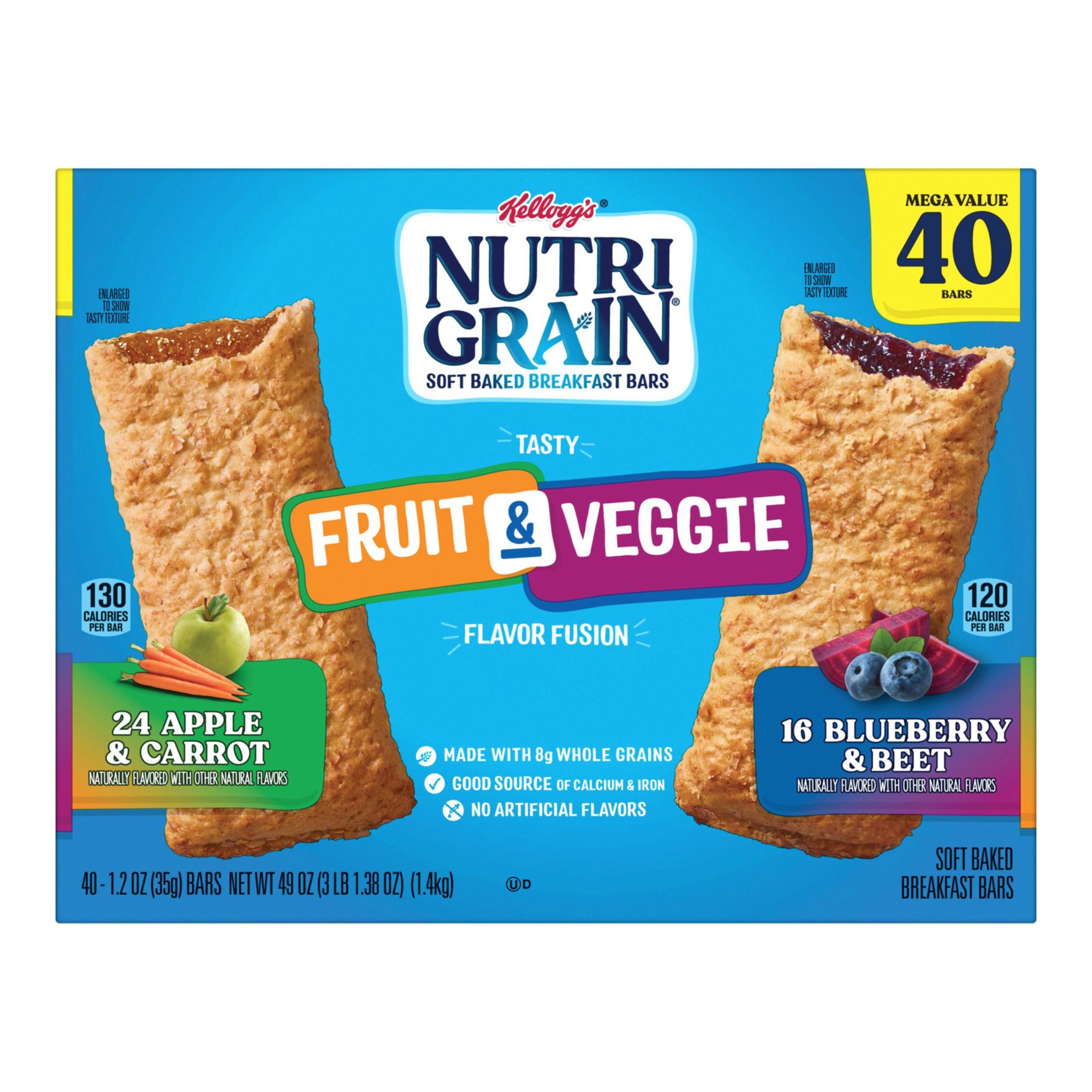 Nutri-Grain Fruit and Veggie Soft Baked Breakfast Bars Variety Pack, 40 ct.