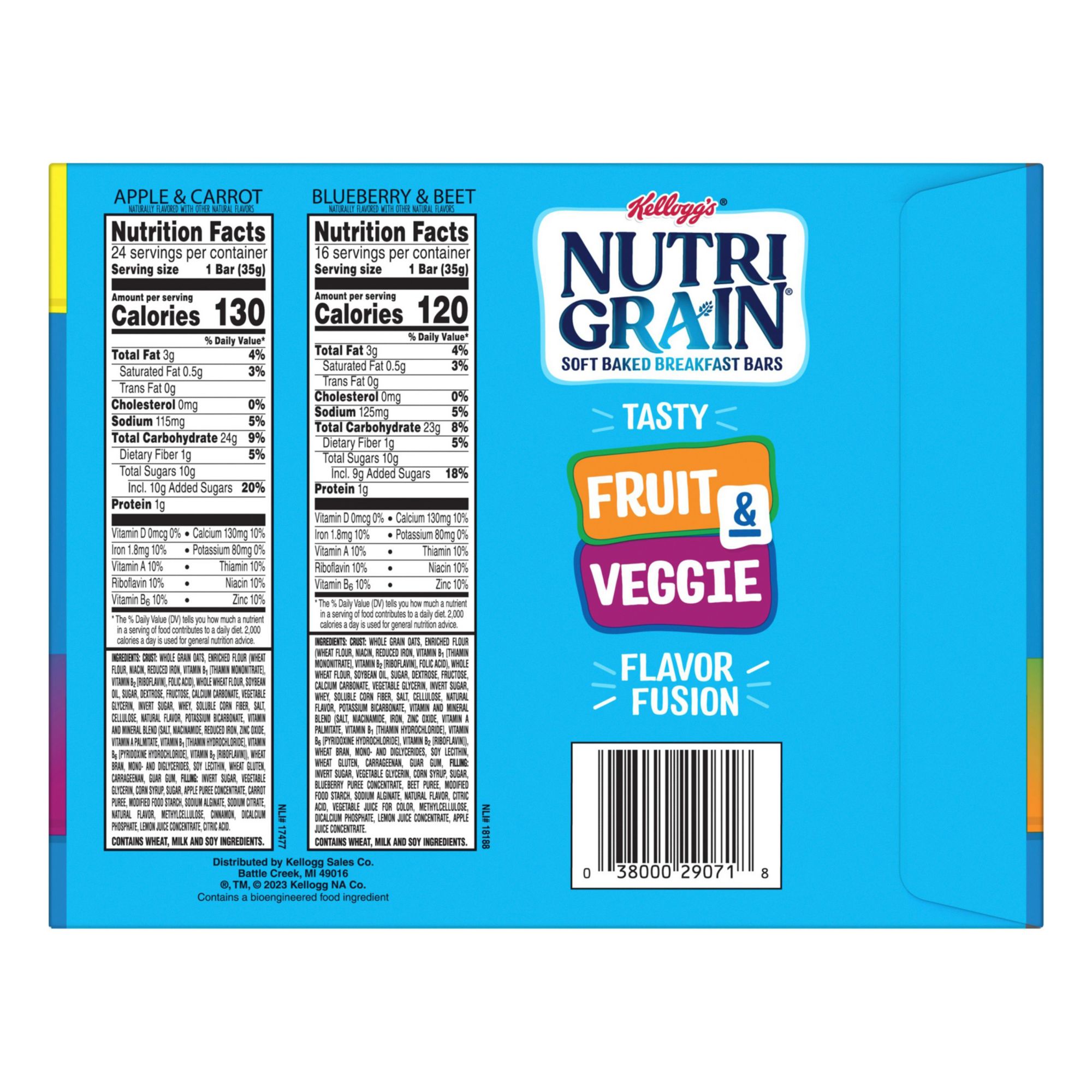 Come prepared for busy mornings with Nutri-Grain. Enjoy the tasty flavor fusion of Nutri-Grain fruit and veggie breakfast bars as a great start to any morning and to help empower parents and kids to win the day. This variety pack includes both Apple and Carrot flavor and Blueberry and Beet flavor. Made with 8g whole grains and a good source of eight vitamins and minerals to make parents feel good, these bars are a tasty addition to any balanced breakfast; Grab a pouch for the kids to eat at home in the morning. Pack a snack for the bus on the way to school. Nutri-Grain fruit and veggie soft baked breakfast bars not only make a tasty addition to your morning, they're also a great choice when you're packing gift baskets or care packages, the delicious options are endless. With this convenient and perfectly baked bar, savvy parents and kids will feel prepared for whatever the day may bring.
