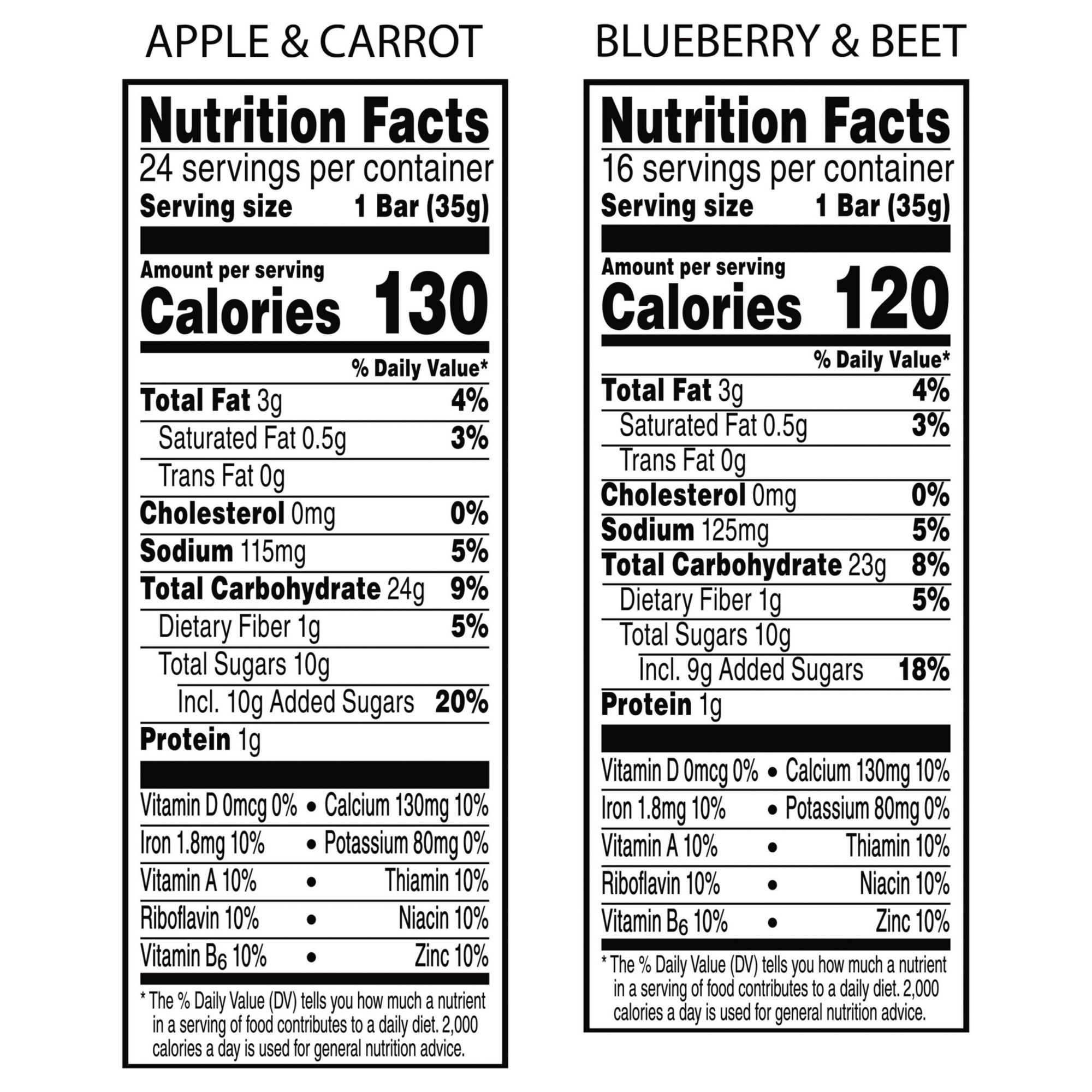 16 Blueberry and Beet bars, 24 Apple and Carrot bars