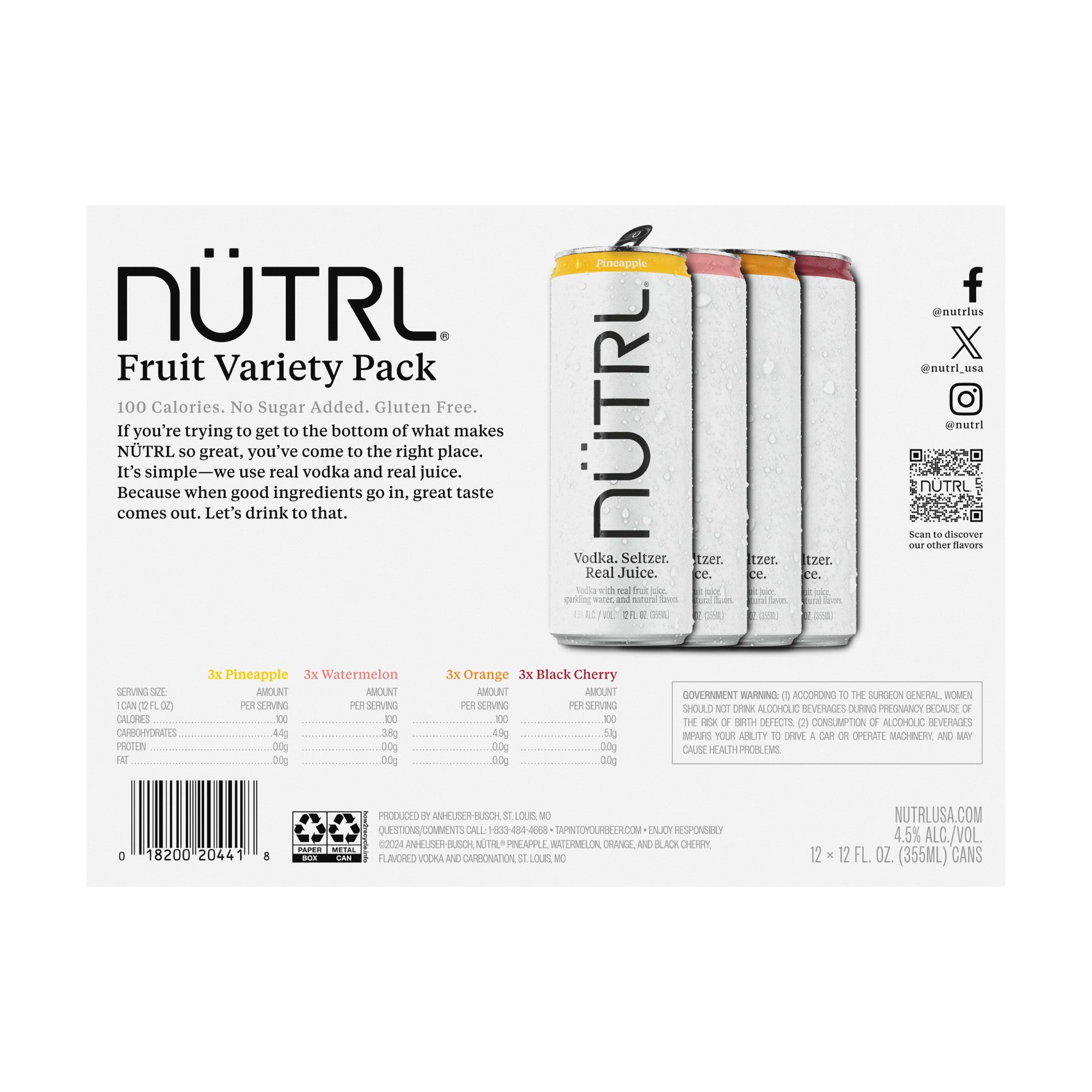 Nutrl Vodka Seltzer Fruit Four Flavor Variety Pack, Cans, 12 pk./12 fl. oz.