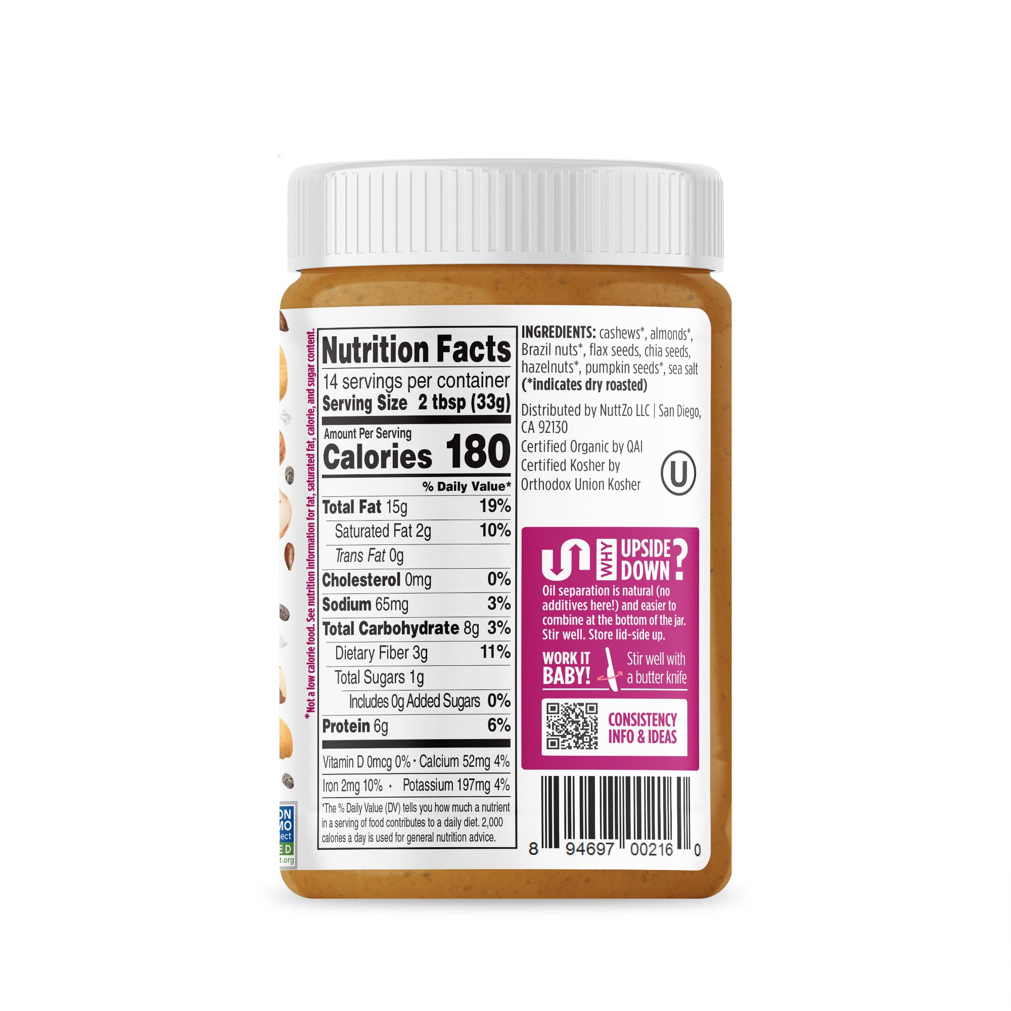 Includes nut and seed butter, 16 oz.