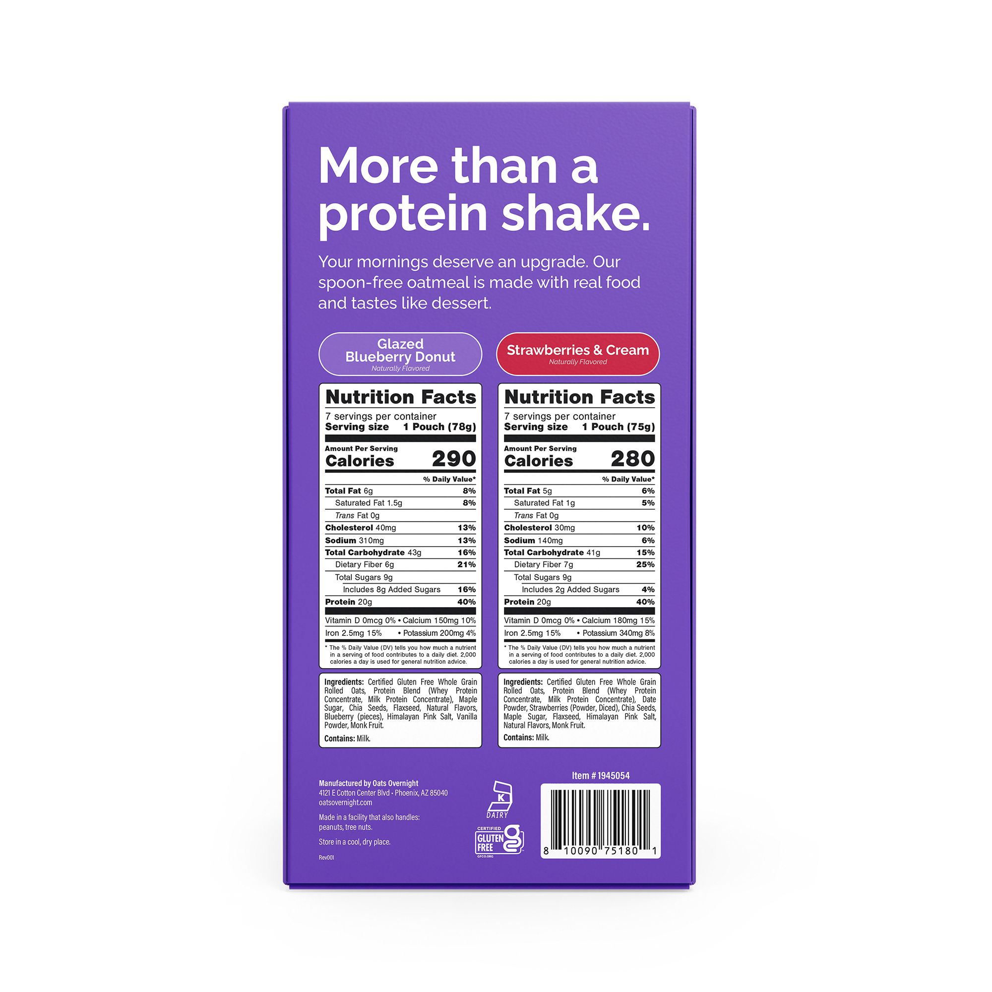 Oats Overnight High Protein Oatmeal Shakes, Strawberries & Cream and Blueberry Glazed Donut, 14 pk.