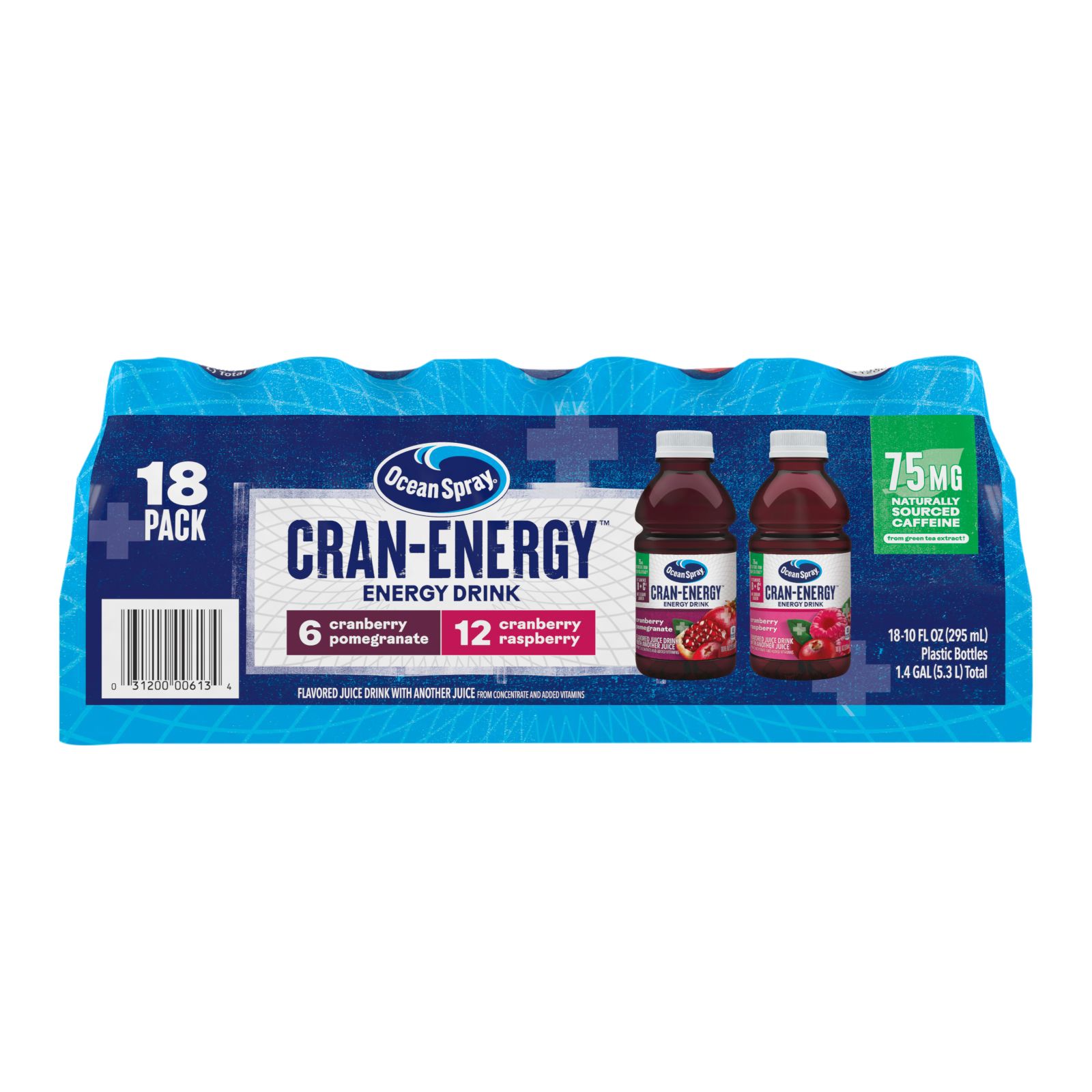 Power up with an energy boost from Ocean Spray Cran-Energy. Bursting with flavor, the Cran-Energy Variety Pack contains 6 Cranberry Pomegranate and 12 Cranberry Raspberry in perfectly sized 10 oz. bottles. Each bottle of Cran-Energy provides 75 mg of caffeine naturally sourced from Green Tea extract with only 40 calories and 8g of sugar. Perfect for on-the-go, enjoy the crisp flavor of Cranberry Pomegranate or Cranberry Raspberry on the morning commute or as a lunchtime pick-me-up. Fuel Smarter. Go Further. All this made possible by the 700+ cranberry farming families that make up Ocean Spray's co-op. Their owners. Their heartbeat. Their inspiration. Ocean Spray believes in the power of the mighty cranberry; Born Tart. Raised Bold.