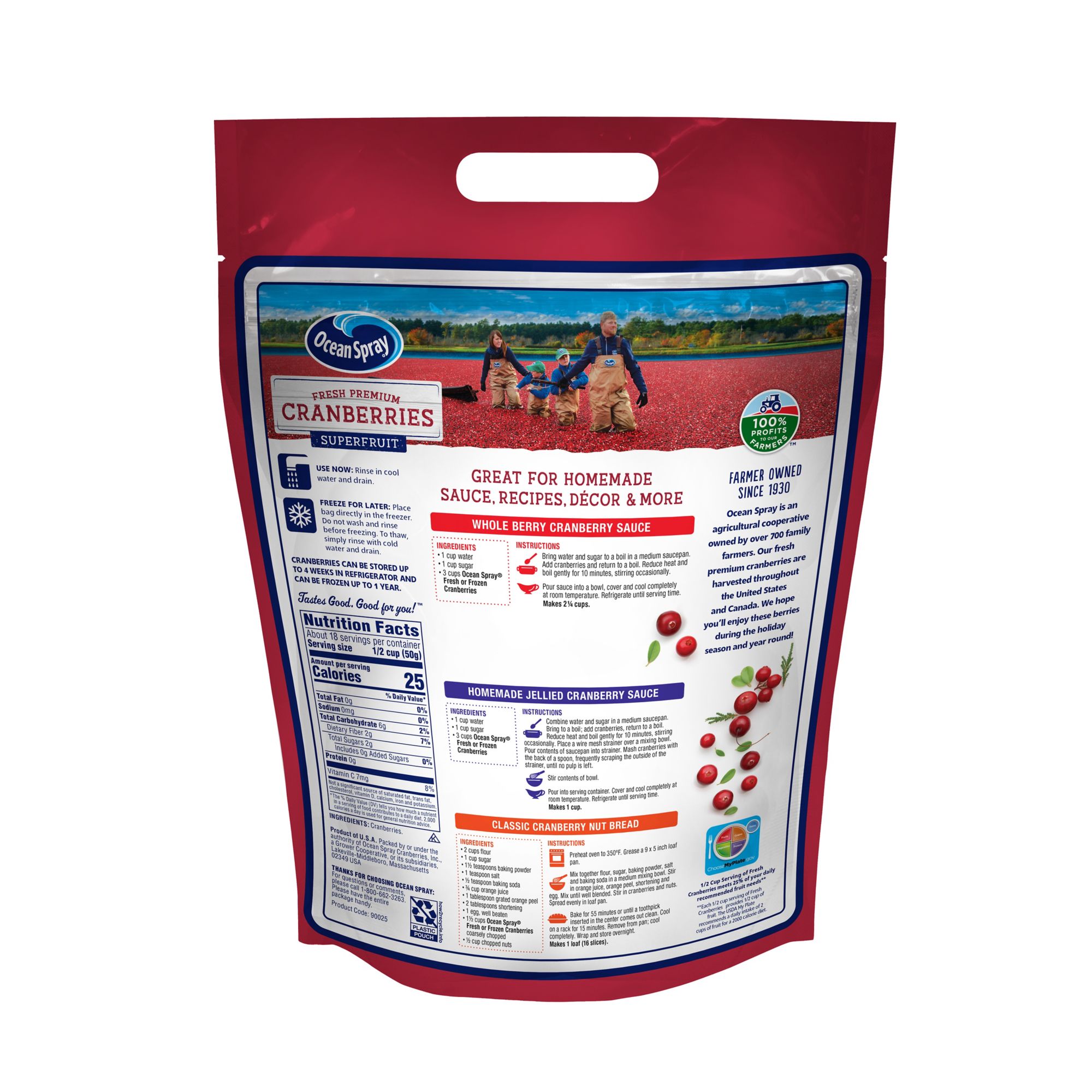 Enjoy the crisp and tangy taste of Ocean Spray fresh cranberries straight from the bog. Stock up during the fall harvest so you'll gave plenty for your favorite cranberry recipes and holiday crafts. You may even want to freeze a few bags, so you can enjoy fresh cranberry recipes throughout the year.
