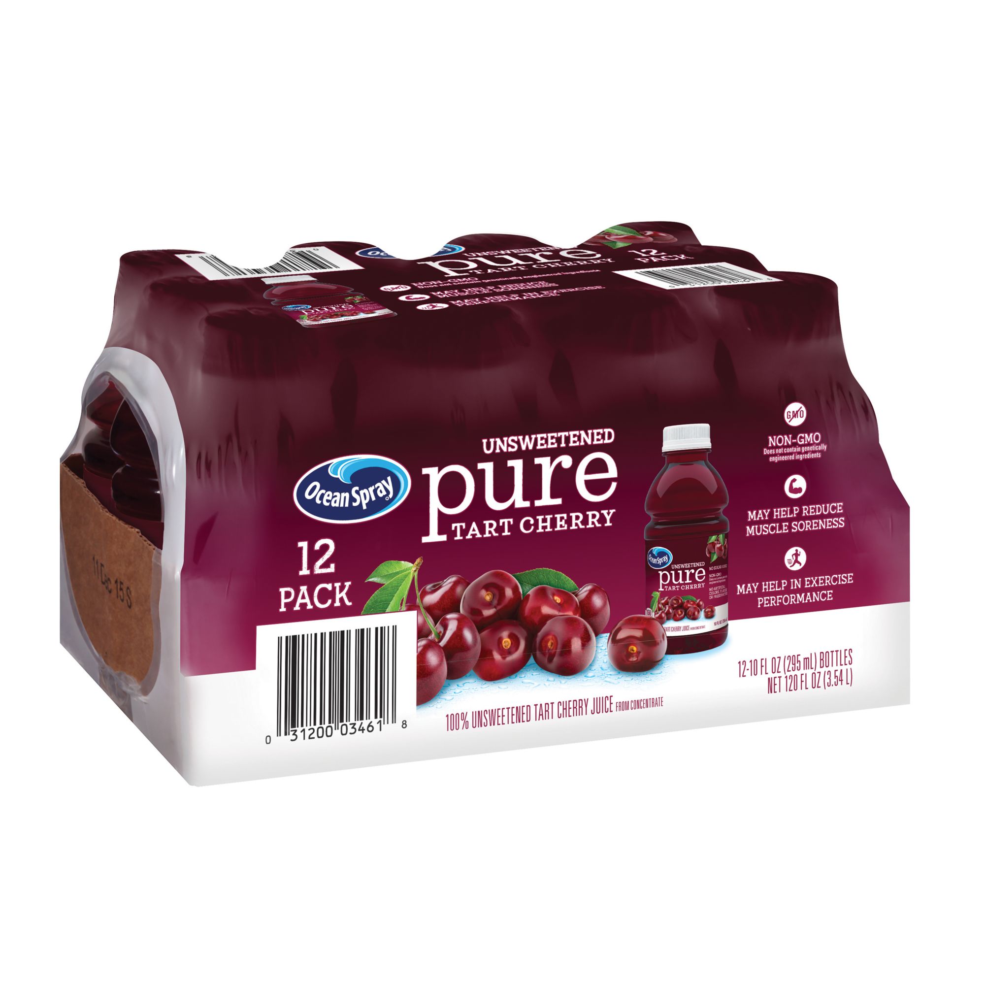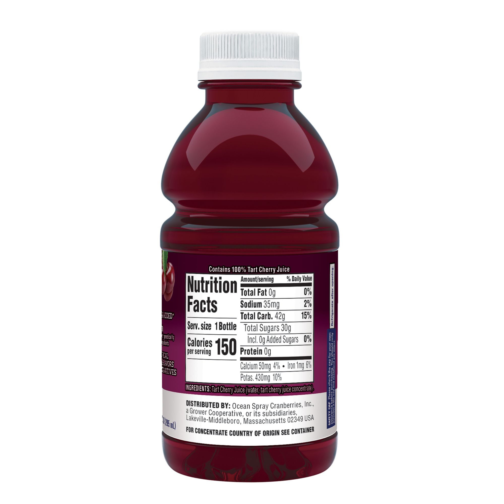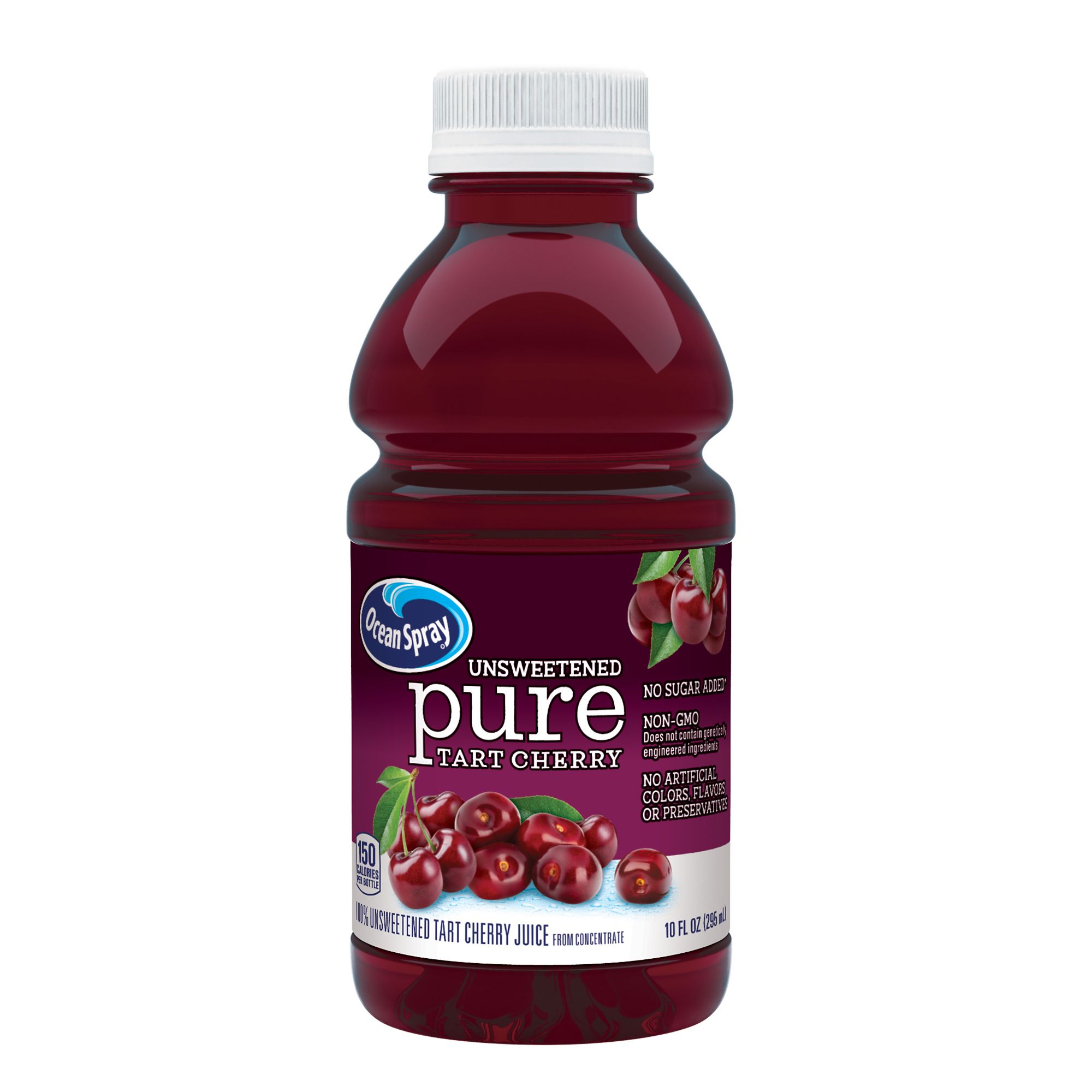 Made with a single fruit, yet filled with healthy benefits to fuel your everyday. Tart cherry juice helps in exercise performance and post workout recovery. Enjoy Ocean Spray Pure Tart Cherry Juice on its own, with sparkling water, or in a smoothie. Ocean Spray Pure Unsweetened Tart Cherry Juice is made with over 3 pounds of tart cherries for a great taste and benefits.