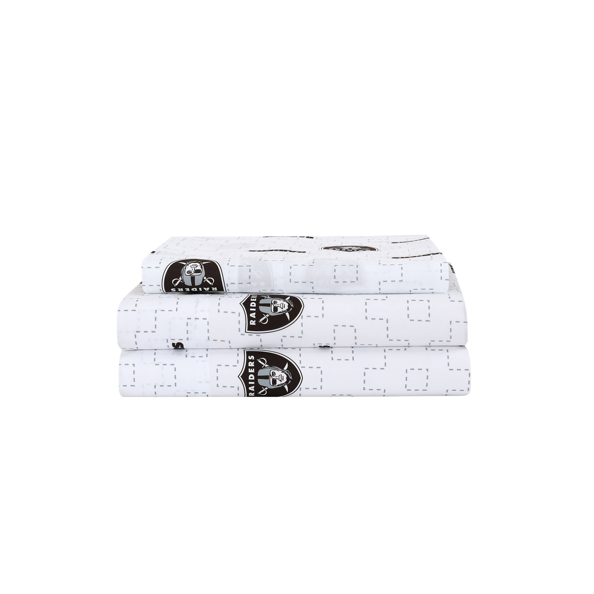 Step up your bedding game and indulge your team spirit with this NFL officially licensed and finely crafted Las Vegas Raiders 'Scatter' Sheet Set. Relive the victories every night with ultra-soft sheets printed with the iconic Raiders logo on wrinkle-resistant, easy-care microfiber. This sheet set is perfect for those who want to enjoy a well-rested night's sleep while repping their team loud and proud. Available in a variety of bed sizes.