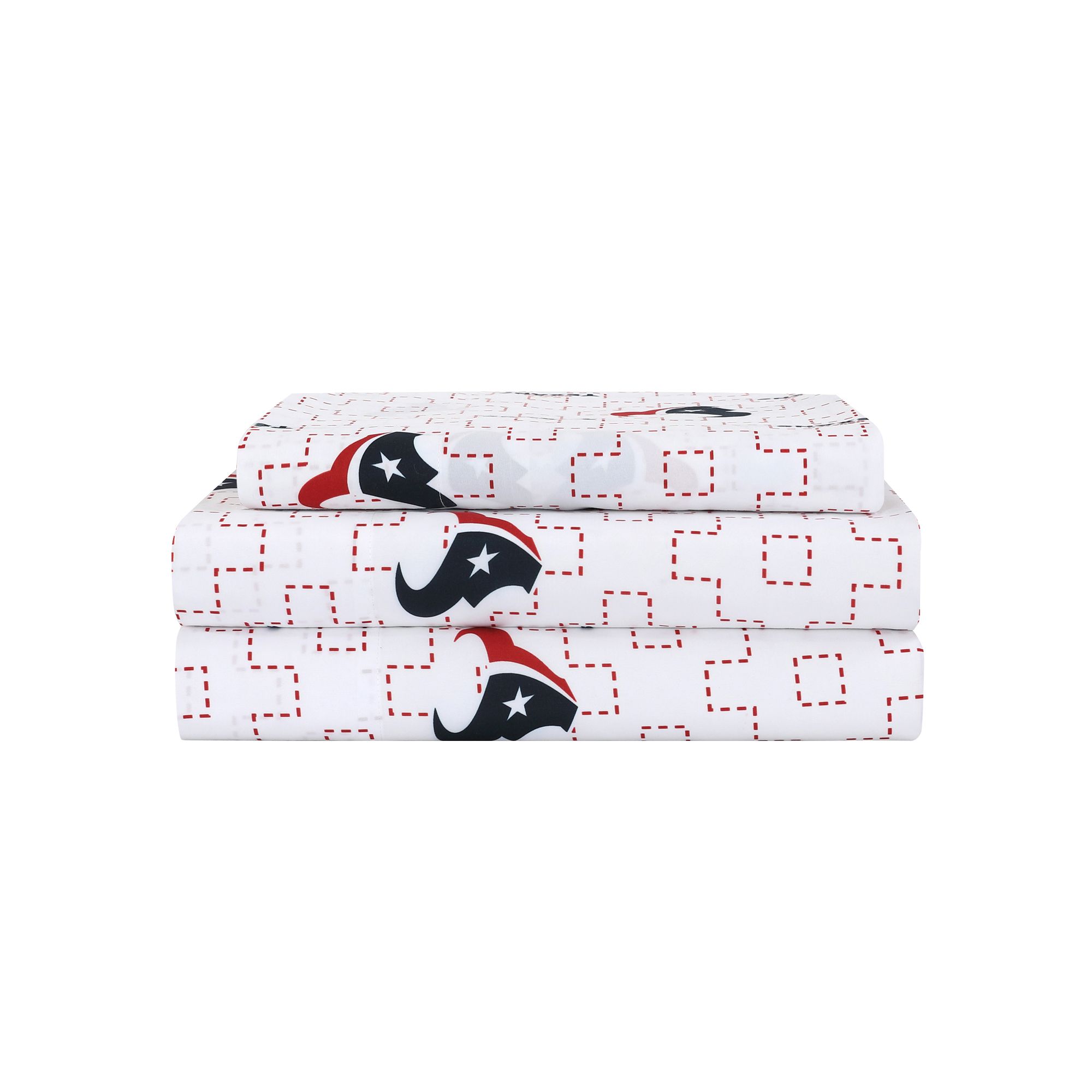 Step up your bedding game and indulge your team spirit with this NFL officially licensed and finely crafted Houston Texans 'Scatter' Sheet Set. Relive the victories every night with ultra-soft sheets printed with the iconic Texans logo on wrinkle-resistant, easy-care microfiber. This sheet set is perfect for those who want to enjoy a well-rested night's sleep while repping their team loud and proud. Available in a variety of bed sizes.