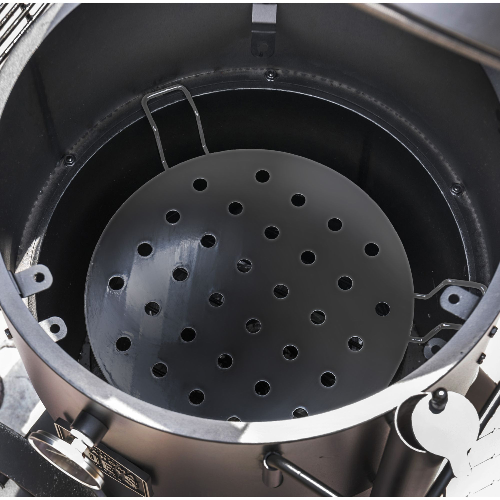 - Cooking grate and meat hangers enable a custom smoking set-up