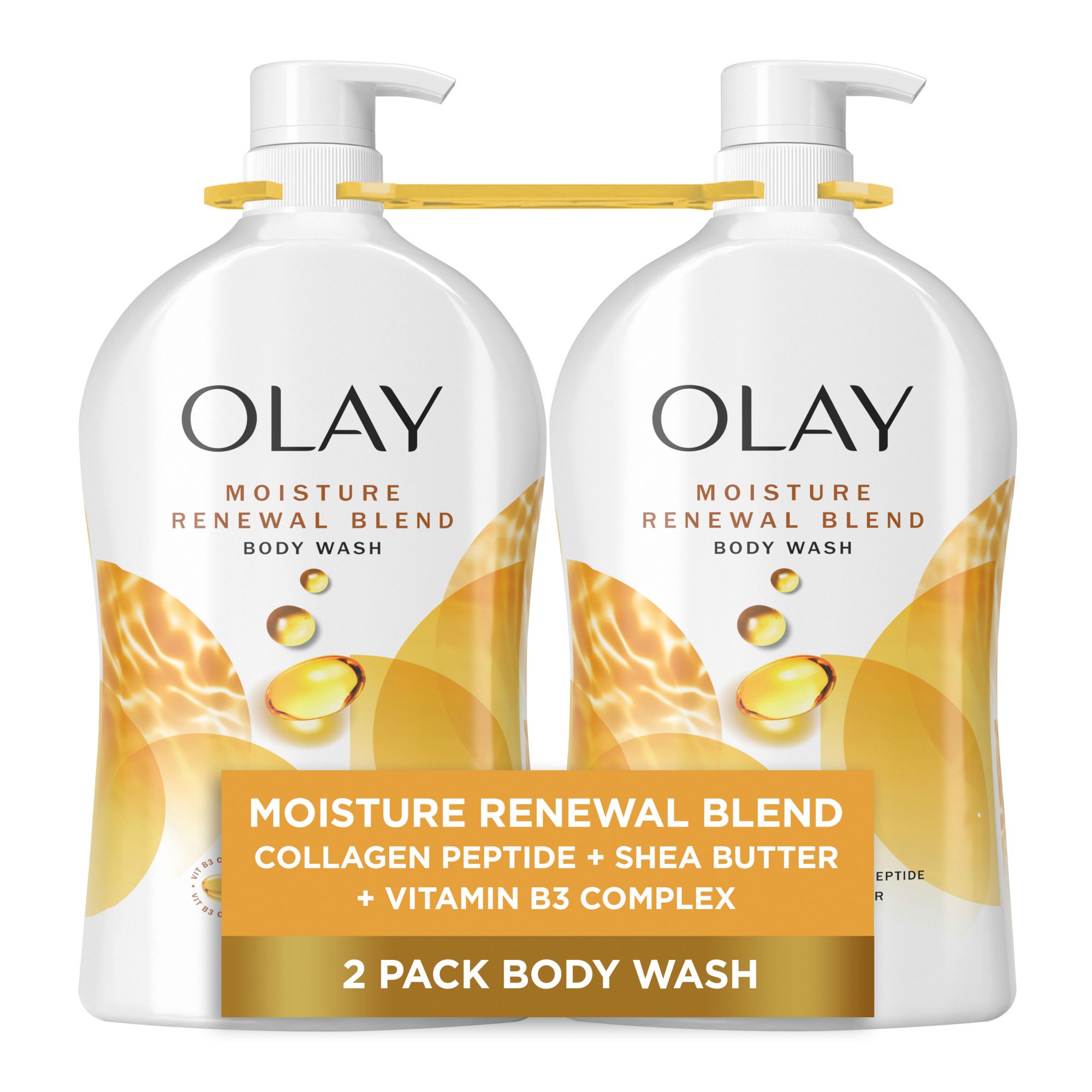 Give your skin the care and revitalization that it needs with every wash. Olay Renewal Blend Body Wash lives up to its name, renewing your skin with hydration and plumping the skin's surface to lock in natural moisture. The result: a visibly healthy glow. This body wash rejuvenates irritated, dry skin with a little help from powerful ingredients and Olay's breakthrough formula: Vitamin B3 Complex, Collagen Peptide, Shea Butter. All three work together to retain moisture, reduce roughness, and prevent irritation, leaving you feeling and looking your best. This 2-in-1 pack allows you to stock up and save. Get more moisturization and take fewer trips to the store. Introduce your skin to the moisturizing body wash that your skin longs for. Directions: Lather with a puff and rinse. At Olay, they believe in superior science. With over 65 years of a science-first approach to skin care, they're dedicated to giving you quality products, safe ingredients, and real results. They're also serious about their commitments. Their Olay Skin Promise to you is zero skin retouching in all advertising. Olay is the first mass skin care brand in the U.S. to take this stance because they know real beauty is honestly beautiful. They also guarantee you'll love your Olay product. If you are not satisfied, they'll give you your money back via a prepaid card. Must submit within 60 days of purchase. Call toll-free 1-855-845-9797 or visit https://www.olay.com/guarantee.