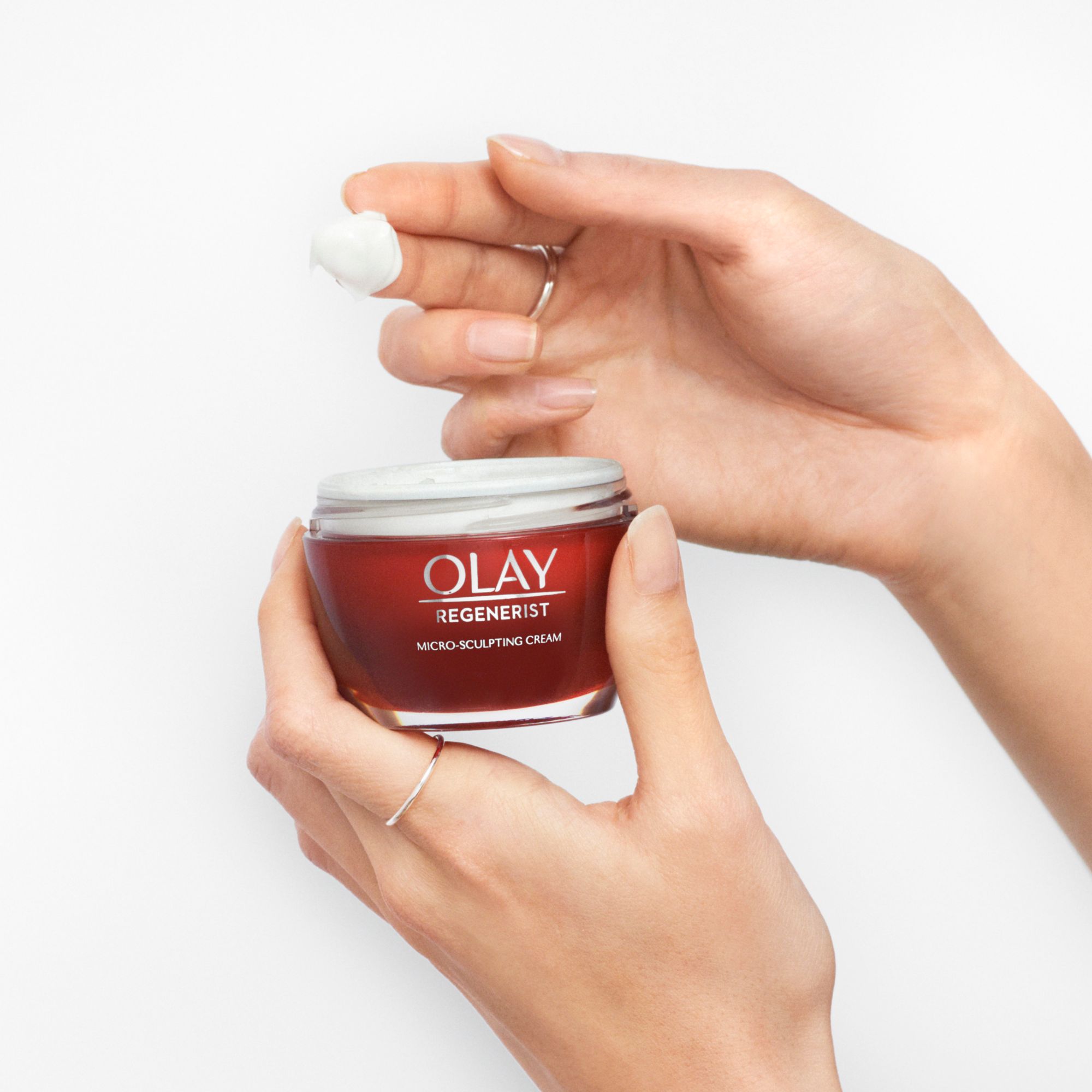 “The Red Jar” – known to many as their go-to, nonnegotiable face moisturizer with over 1 billion jars sold, Olay Micro-Sculpting Face Cream is designed to visibly diminish wrinkles & fine lines starting day 1. Infused with Vitamin B3, Amino-Peptides, Hyaluronic Acid and Antioxidants for ultimate penetration, this moisture-binding formula instantly hydrates to improve elasticity and firm for a lifted look. Vitamin B3 not only helps with surface skin cell turnover and regeneration, but also leads the exfoliation that helps remove dead, dull skin for a fresher, younger look. Used as the last step in your routine, this luxurious-feeling moisturizer leaves skin hydrated, softens the look of fine lines and wrinkles and firms the look of skin with plumping hydration. Olay Regenerist's formula is designed to deliver moisture 10 layers deep into the skin's surface to reveal the skin you love to flaunt for years to come. Use Olay daily and see skin transformation in 28 days. This is a pack of two 1.7 oz jars.