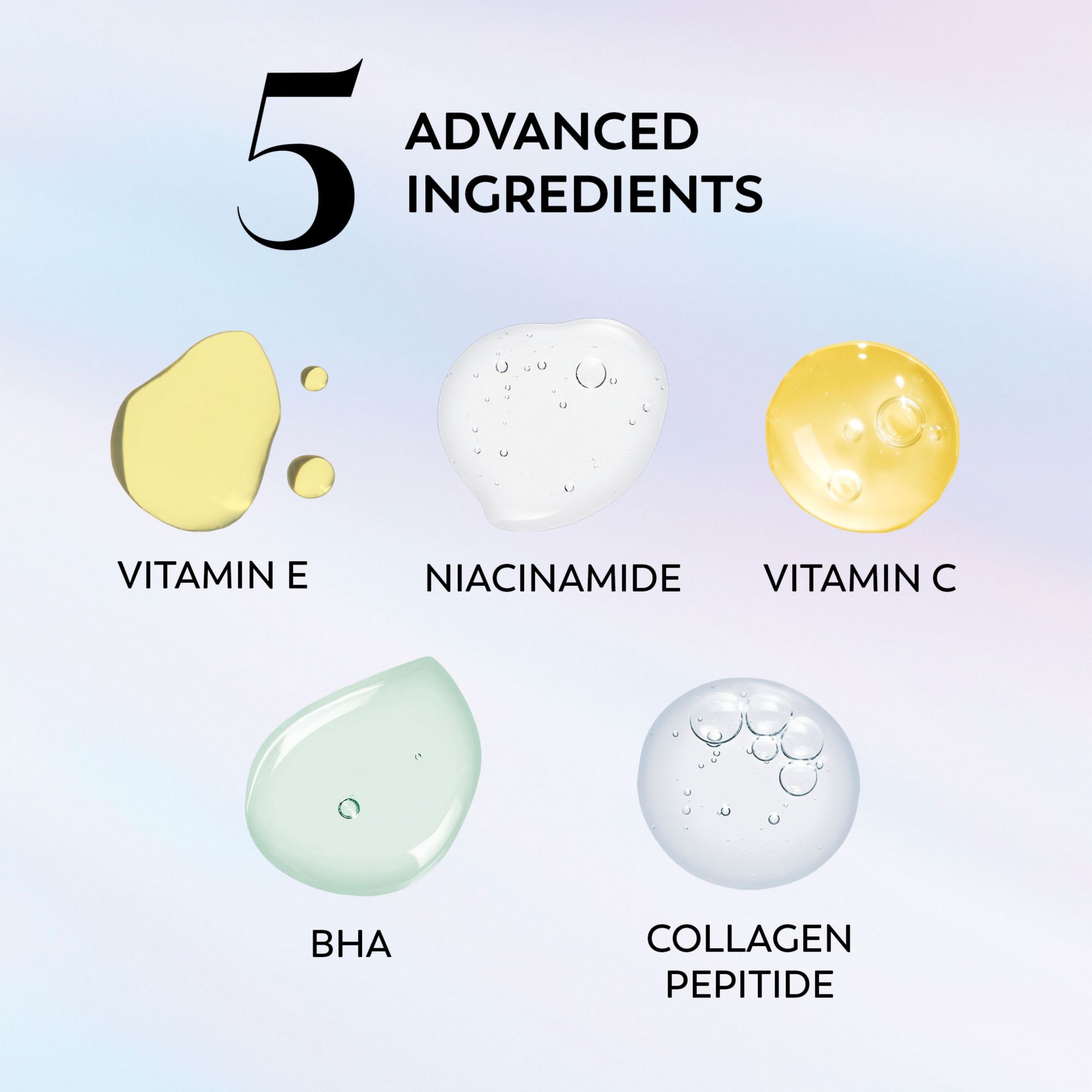 Super serum complex: formulated with niacinamide, BHA, collagen peptide, vitamin C, vitamin E