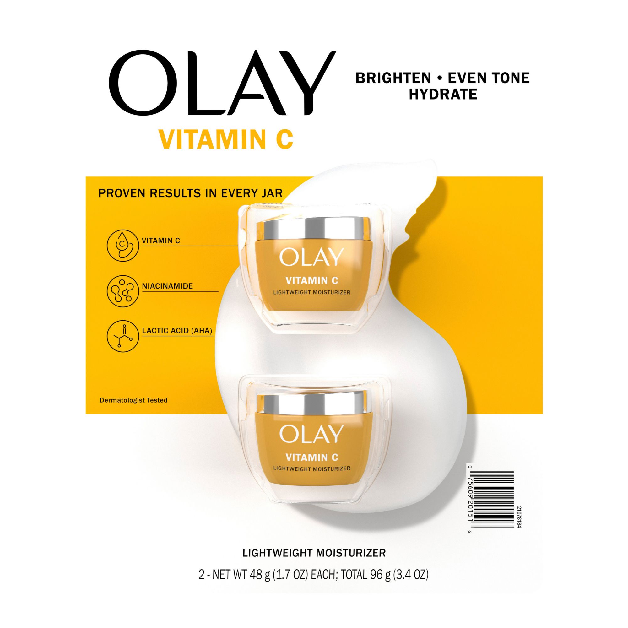 Olay Vitamin C Brighten, Even Tone, Hydrate Lightweight Moisturizer, 2 pk./1.7 oz