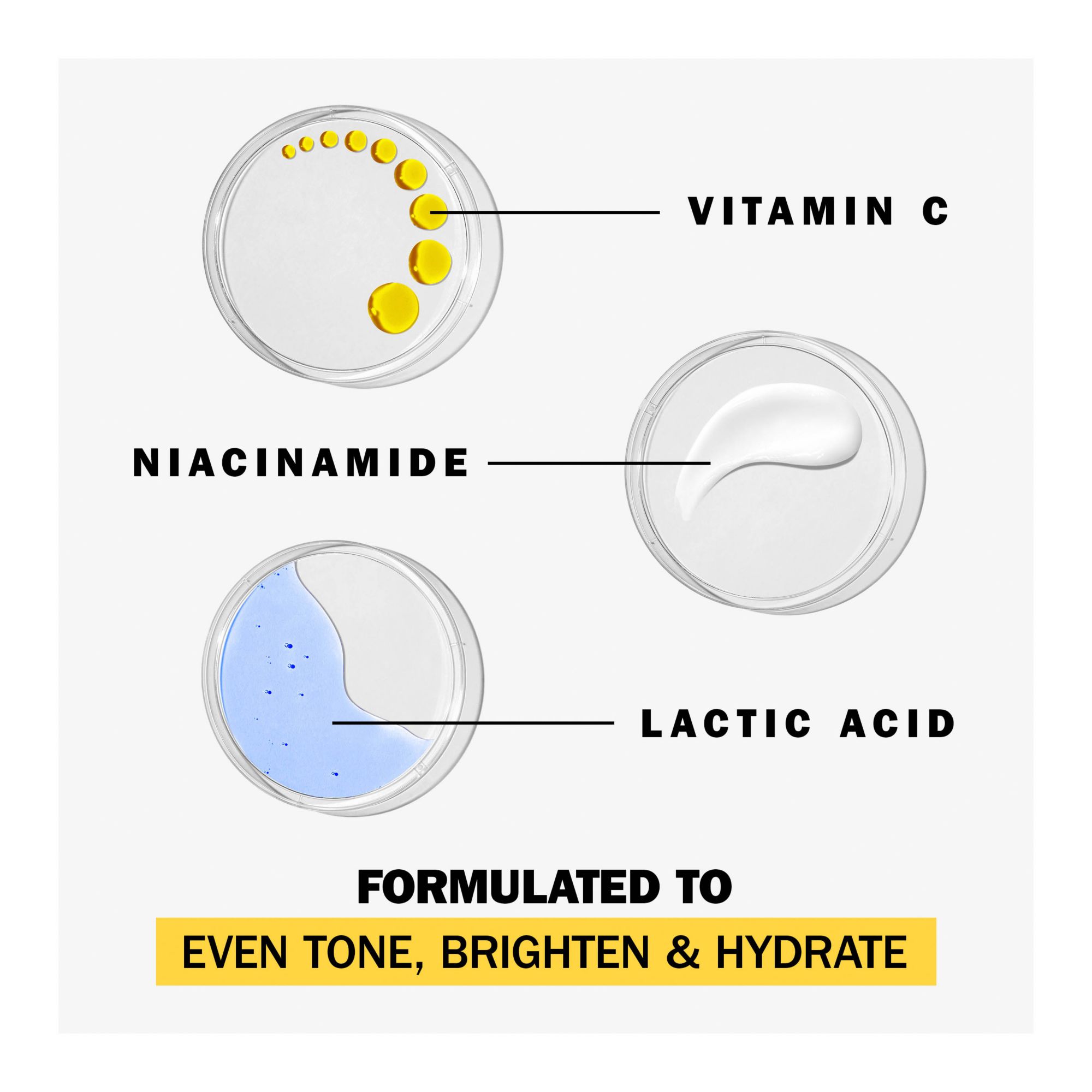 Fresh squeezed ingredients: this formula, crafted with vitamin C, vitamin B3 and lactic acid, visibly brightens and hydrates skin