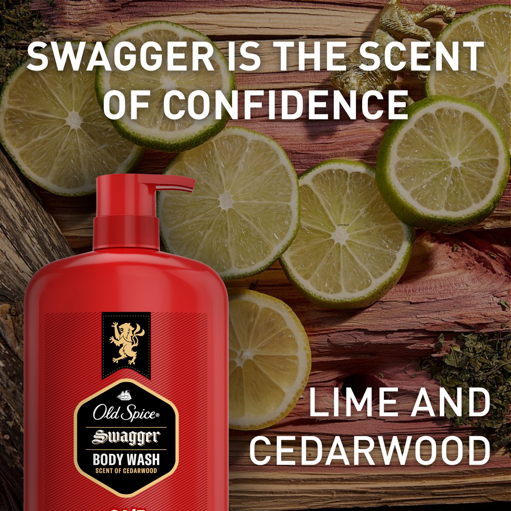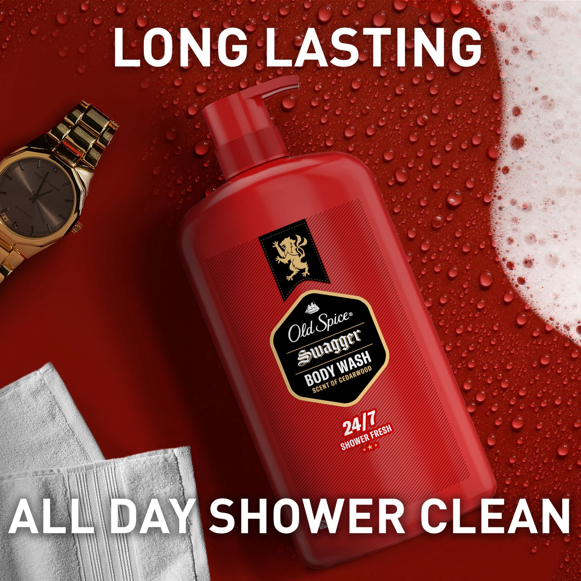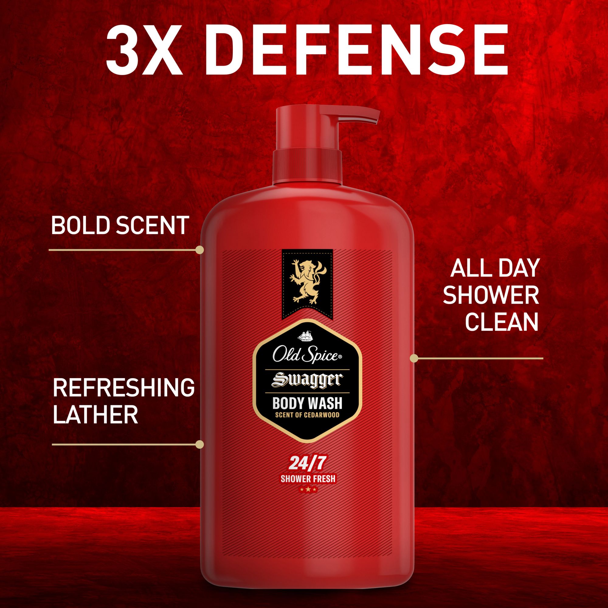 Old Spice Red Collection Body Wash offers Lasting Scent and All Day Shower Freshness. Swagger Body Wash has an enhanced scent, meaning you're free to storm castles, fight sea monsters and win championship football games. This stellar body wash cleans away dirt and odor with a invigorating lather and a bold scent of cedarwood. Old Spice Red Collection favors the bold and that means you - day, night and the next morning too.