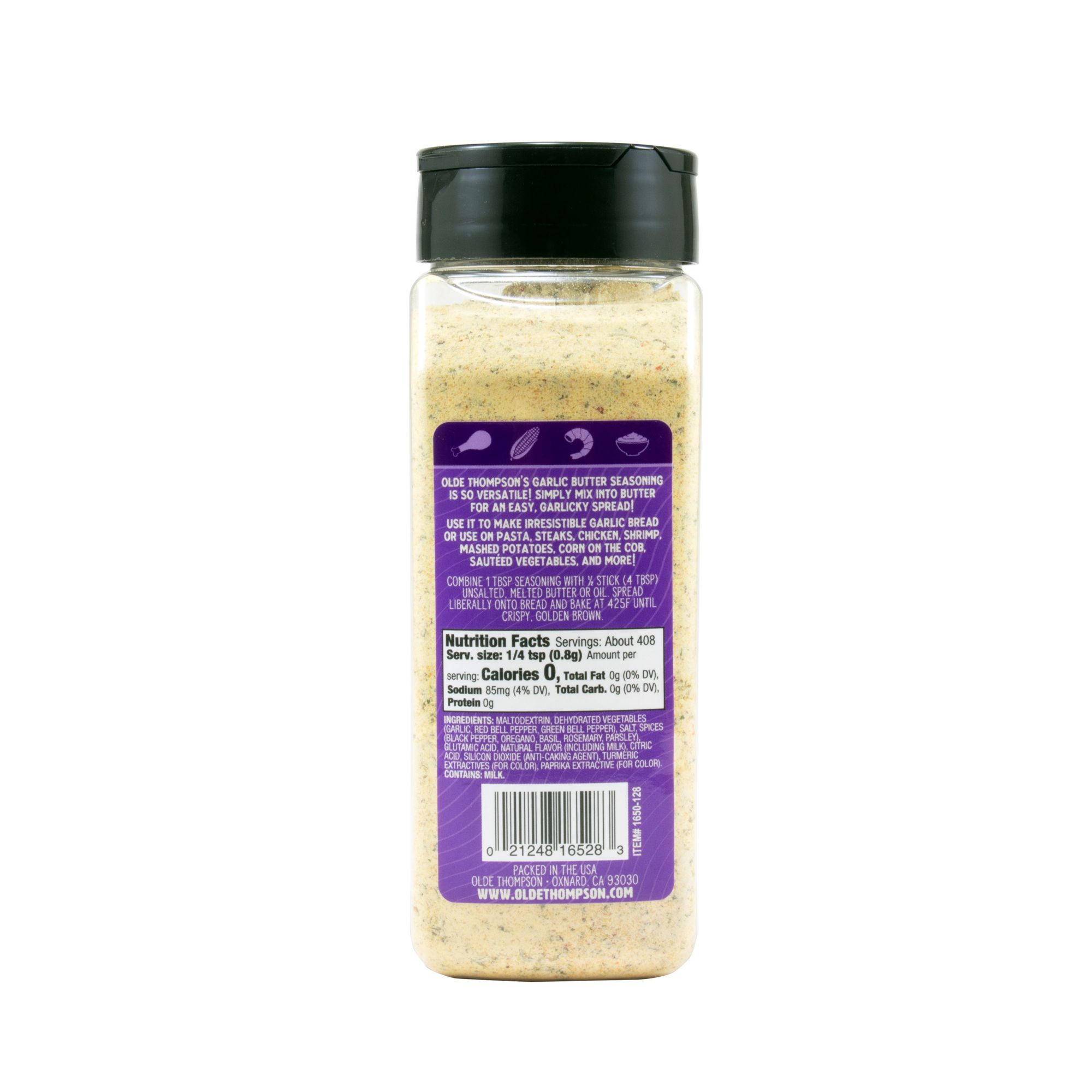 Olde Thompson Garlic Butter Seasoning is a delicious garlic and butter spicey mixture with herbal notes. Use this seasoning on pasta, sauces, breads, and more.