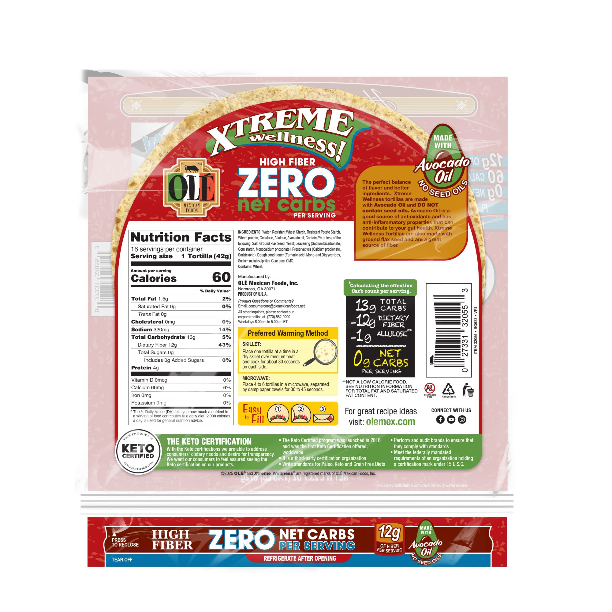 Ole Xtreme Wellness High Fiber Zero Net Carbs Family Pack, 16 ct.