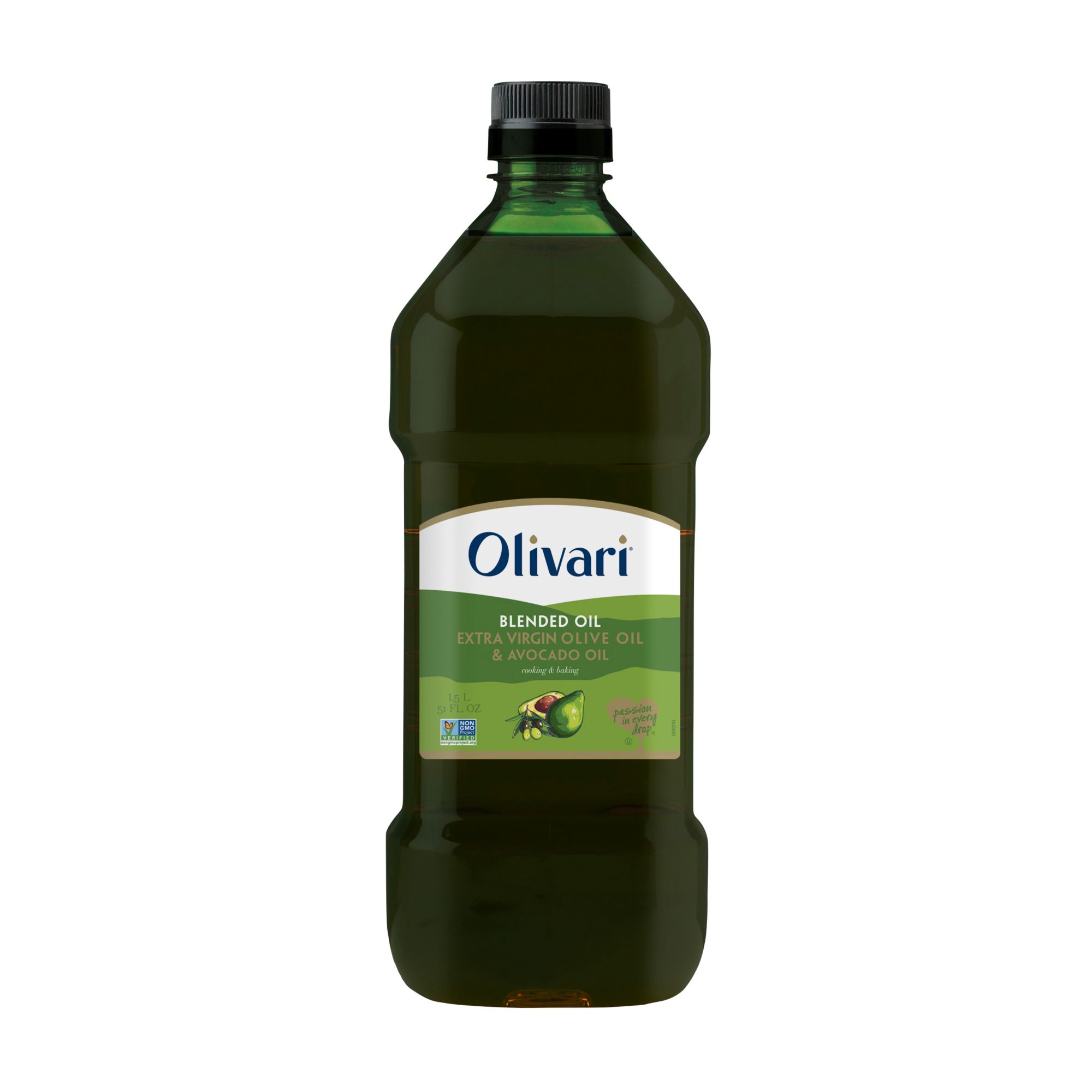Includes extra virgin olive oil and avocado oil blend, 51 oz.