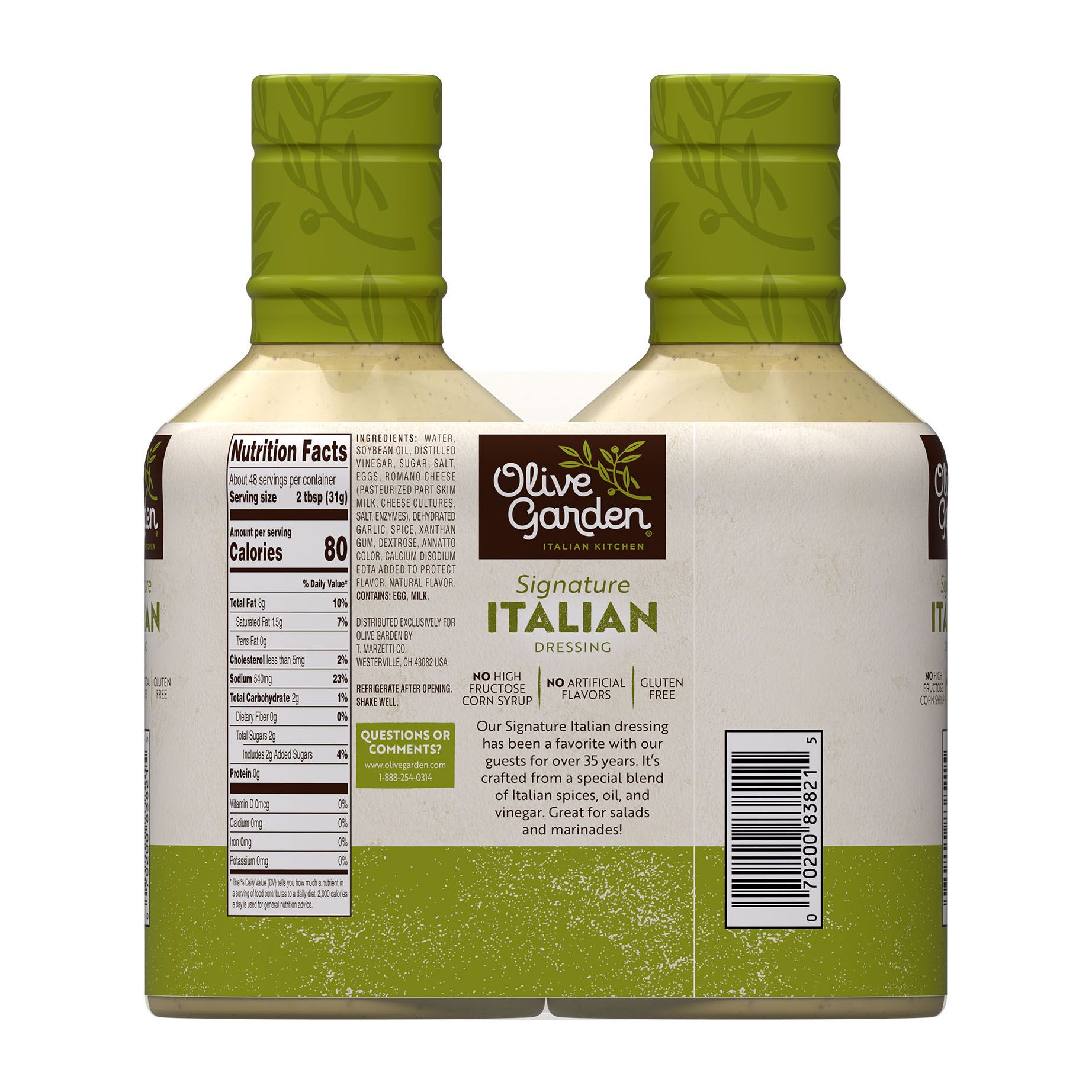 Olive Garden Signature Italian Dressing is the exact same dressing that you know and love from the Olive Garden restaurant. If you love Olive Garden's signature Italian dressing, these bottles bring that delicious flavor to your kitchen at home. This pack includes two 24 oz. bottles of Olive Garden's Italian dressing