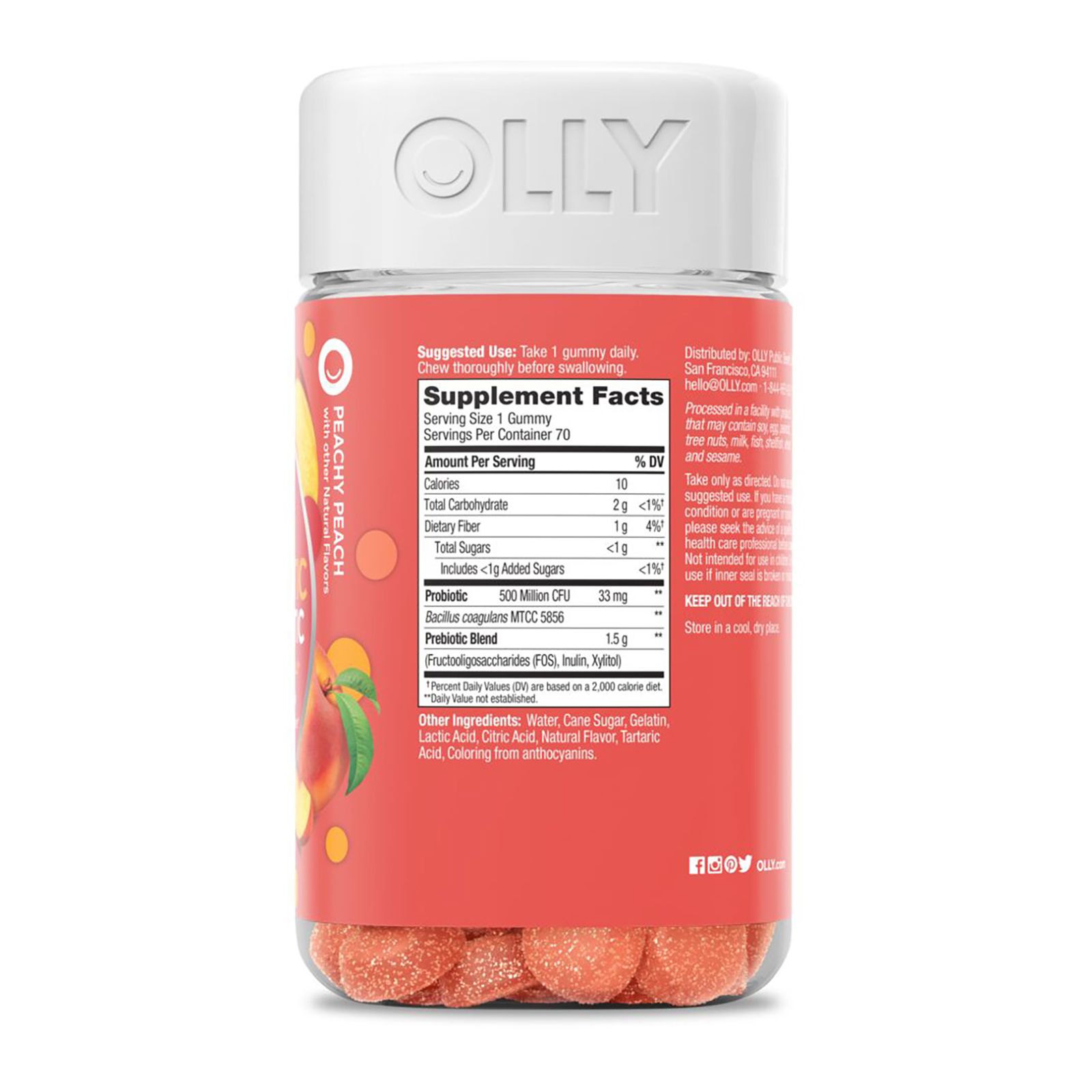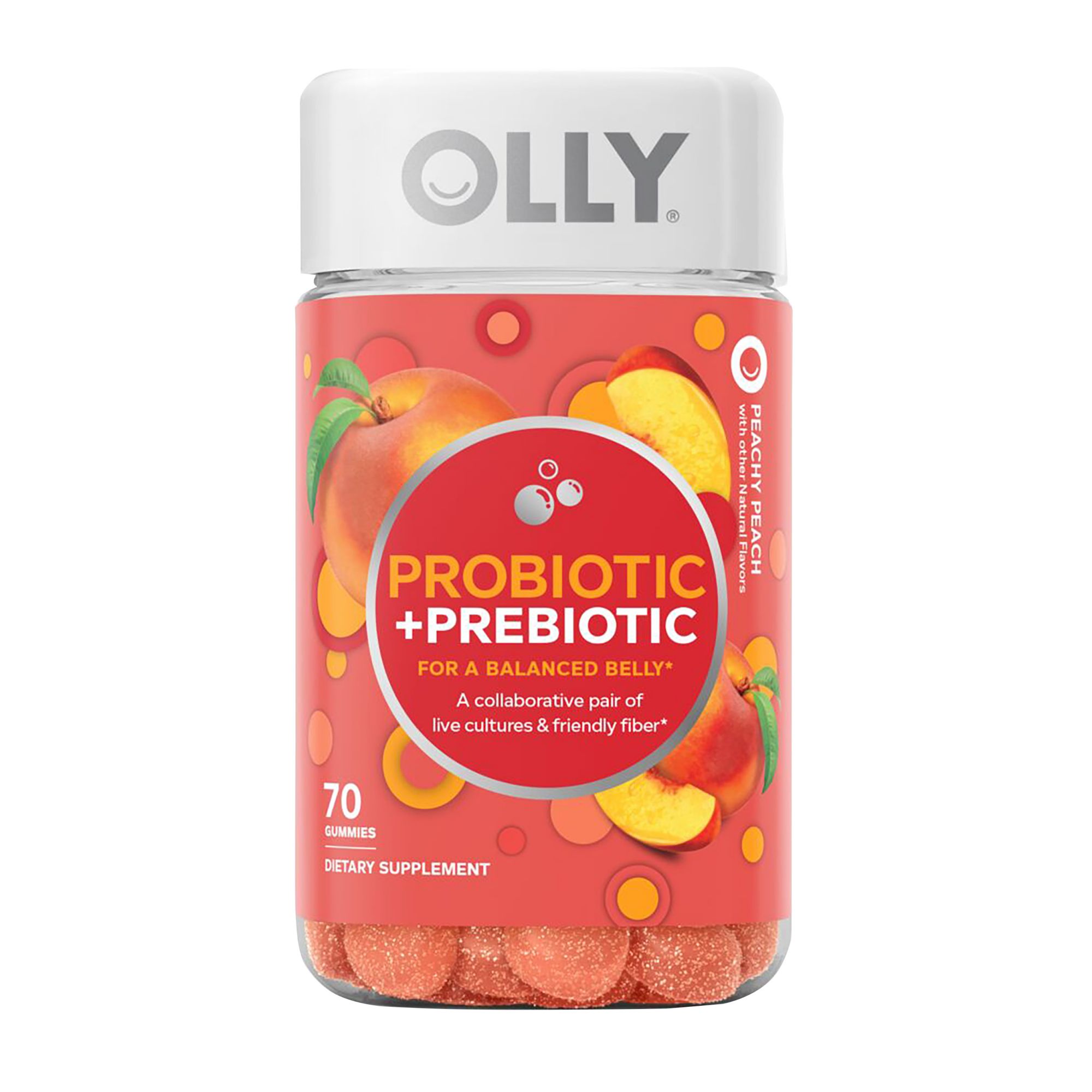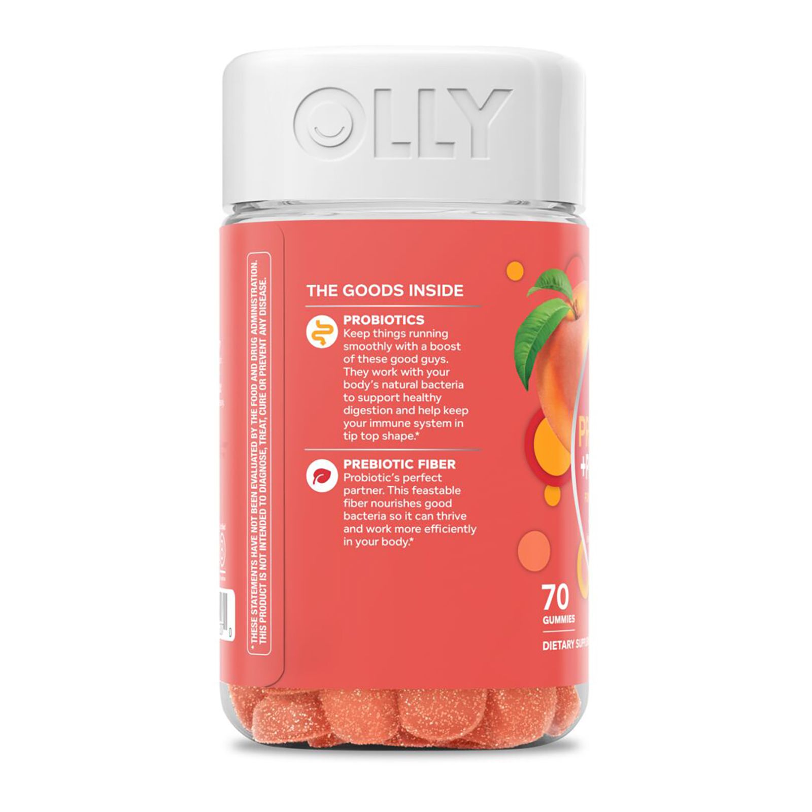 OLLY Probiotic + Prebiotic gummies double down with a boost of the good gut bacteria plus Prebiotic Fiber to help keep things moving in the right direction.* These Probiotic gummies for adults serve up a powerful combination of live Probiotics and Prebiotic Fiber to support natural flora and digestion balance. Probiotics deliver 500 million Bacillus Coagulans, good bugs that work with your body’s natural bacteria to support a healthy digestive tract and immune system, and Prebiotic Fiber nourishes your good bacteria so it can work more efficiently in your body.* Good health is at the center of everything OLLY does. That's why they've made it their mission to make nutrition easy to understand. They do it by crafting products that are as effective as they are delicious - because OLLY knows when something feels good, you’re more likely to do it.*