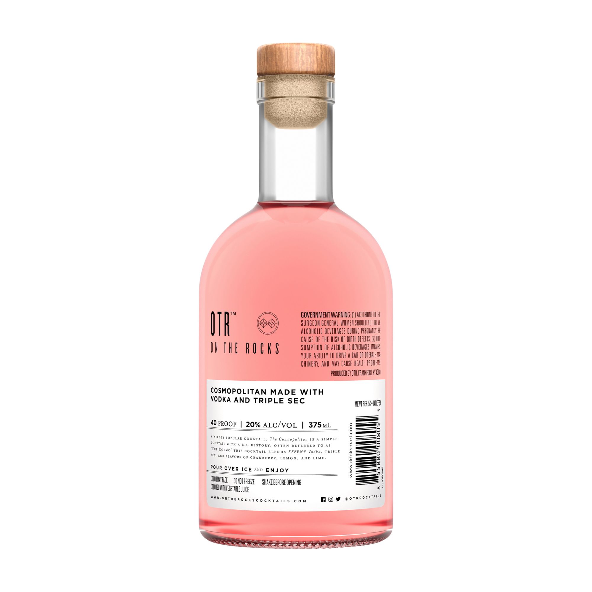 Taste the modern twist on a classic with On The Rocks, OTR Cosmopolitan Ready to Drink Cocktail. On The Rocks carefully crafts cocktails that make the moment. On the sofa, by the pool, at a festival, this Cosmo is ready to pour over ice and enjoy. Developed by mixologists, On The Rocks cocktails bring the bar to you with premium spirits and pure creativity. This iconic recipe is Cosmopolitan by name and nature, combining the refreshingly tart hint of cranberry, lemon and lime flavor, with the orange sweetness of Triple Sec. All cut through with crystal-clear EFFEN Vodka. Just pour over ice for effortless enjoyment, whether you're flying back home or finishing the 9-to-5. Garnish with a lemon peel to elevate the evening. Each 375ml bottle contains 20% alcohol by volume and should be enjoyed responsibly. OTR delivers the bar wherever you are. Just open, pour over ice and enjoy.