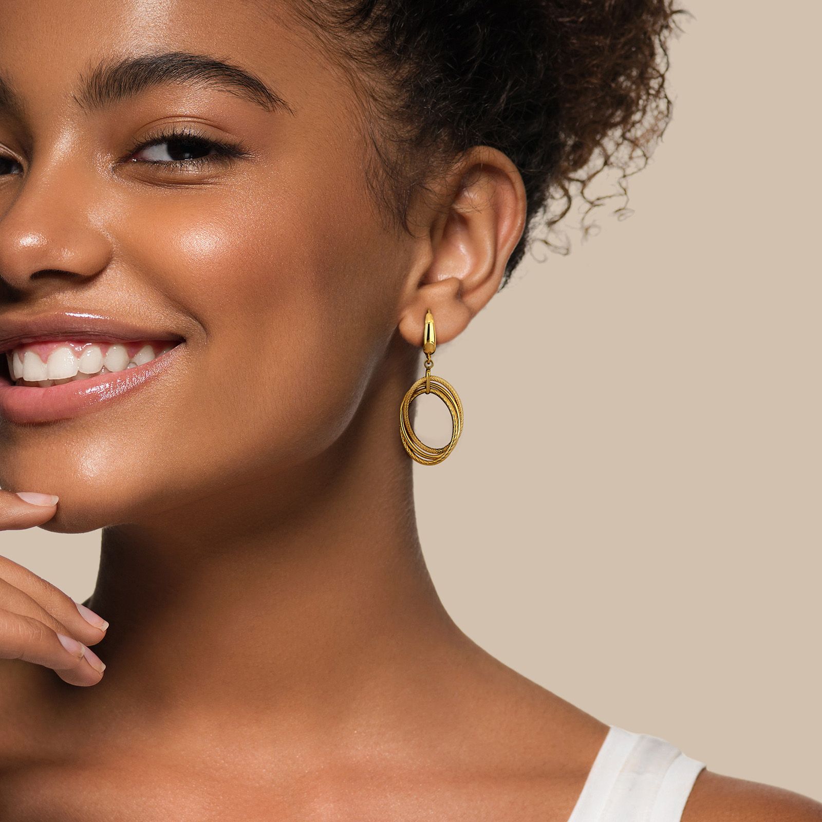 (20 Items)Open Triple Oval Hanging Earrings in 10k Yellow Gold