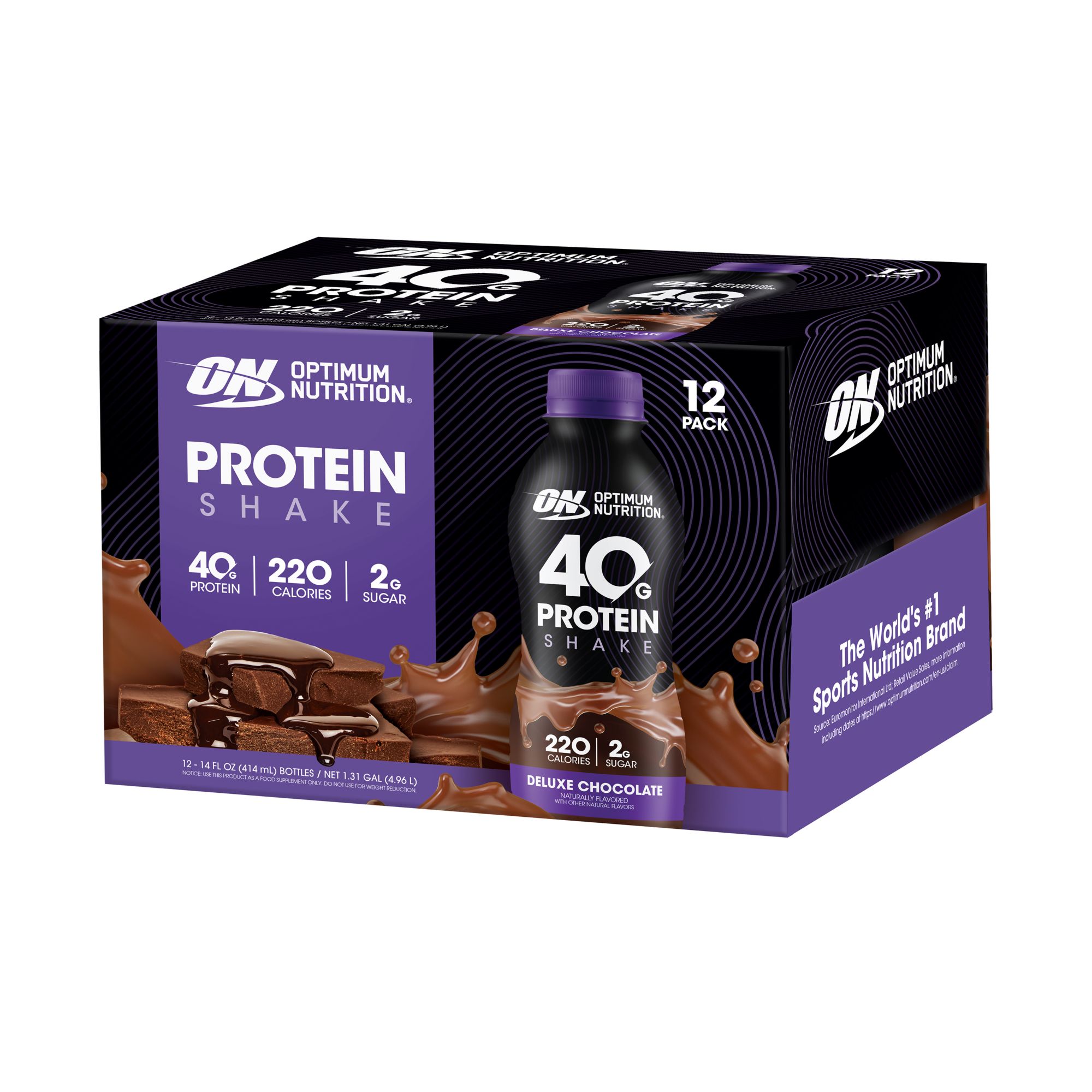 Optimum Nutrition 40g High Protein Shake, Ready To Drink, Deluxe Chocolate, 12 ct./14 oz.