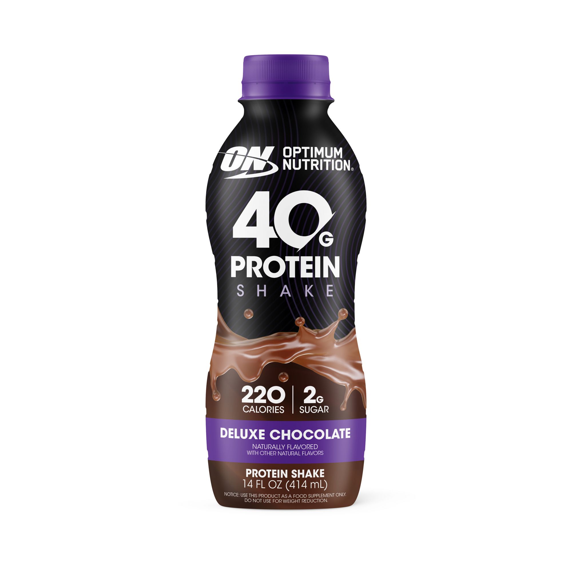 Optimum Nutrition 40g Protein Shakes deliver the advantage you want in your performance nutrition routine. With 40g of high-quality, complete, and ready-to-drink protein that tastes great, it’s formulated for serious muscle support anytime and anywhere. Created for anyone who wants to maximize muscle recovery and growth,* it’s the convenient way to go big on protein without the fuss of shaking, blending, or mixing powdered protein. Every delicious, naturally flavored shake also contains essentials like 5g of fiber and an excellent source of calcium. Serving up the delicious flavor of bold, rich Deluxe Chocolate – you'll always look forward to adding the Optimum Advantage in your training routine. Made using a process that includes 250+ rigorous tests to deliver the highest quality products, our 40g Protein Shakes are everything you want and expect from Optimum Nutrition – the World’s #1 Sports Nutrition Brand.** * When taken over time with regular resistance exercise **Source: Euromonitor International Ltd; Retail Value Sales, more information including dates at https://www.optimumnutrition.com/en-us/claim