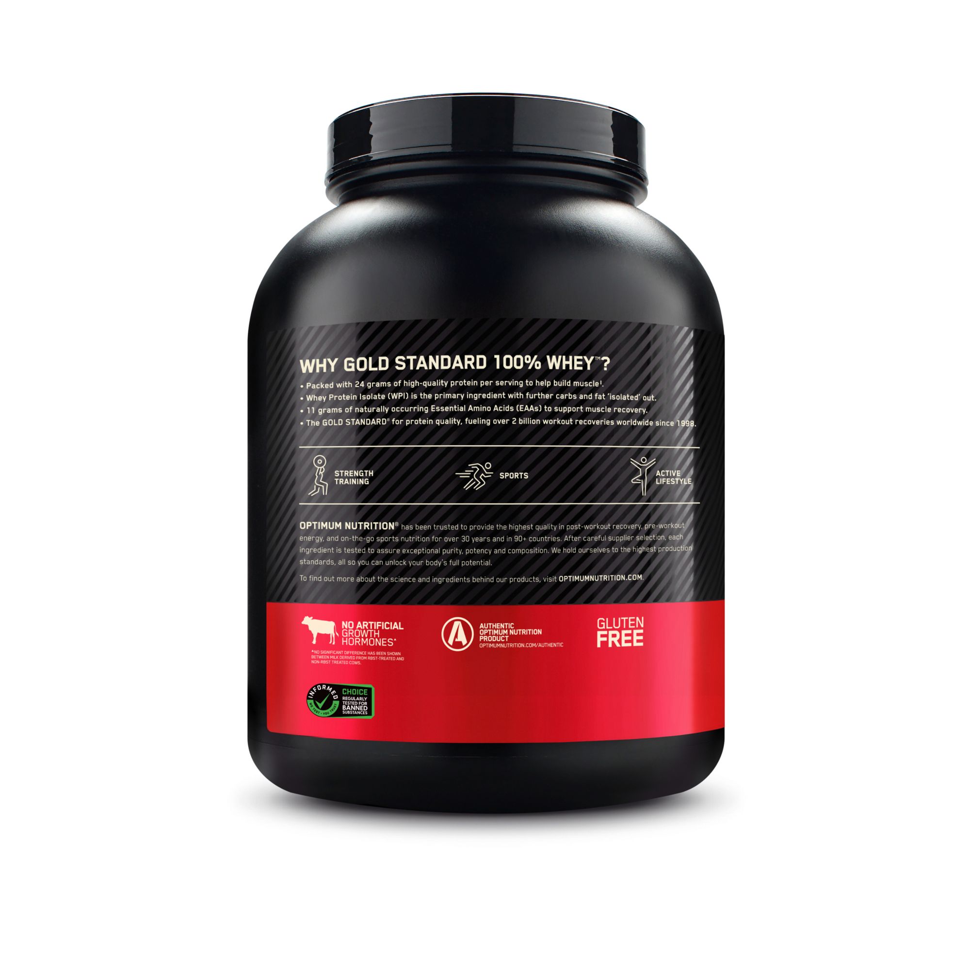 Get more out of your workouts and unlock your potential with Gold Standard 100% whey protein – providing 24 grams of protein, 5.5g of naturally occurring BCAAs, and 11g of naturally occurring EAAs per serving. Whey protein isolate is the primary ingredient with excess carbs and fat ‘isolated’ out using sophisticated filtering technologies. With a wide range of great-tasting flavors and easy mixing with only a glass and spoon, there’s no doubt this is the true Gold Standard in 100% whey protein.