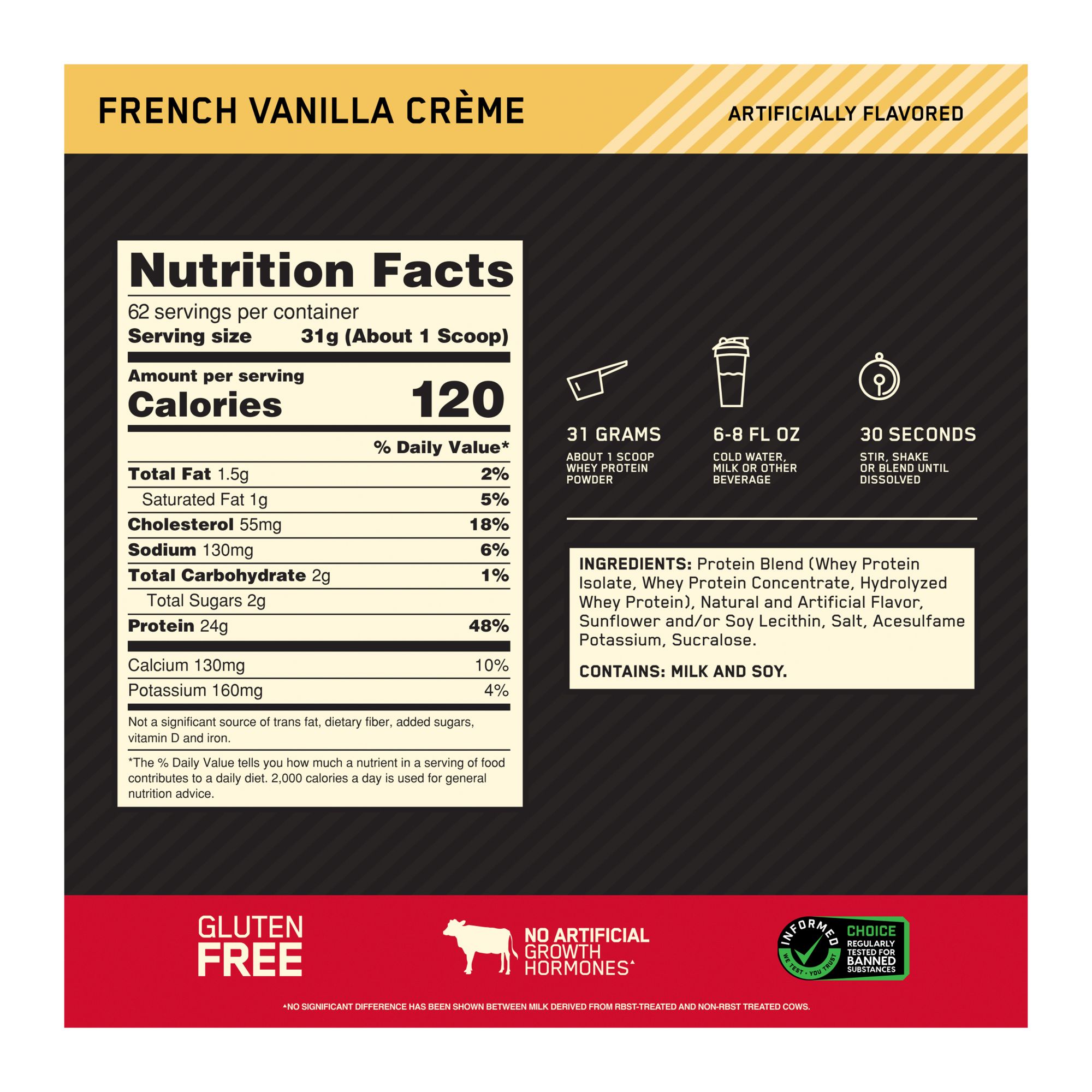 Optimum Nutrition Gold Standard French Vanilla Creme Whey Protein, 24g Protein, 4.23 lbs.